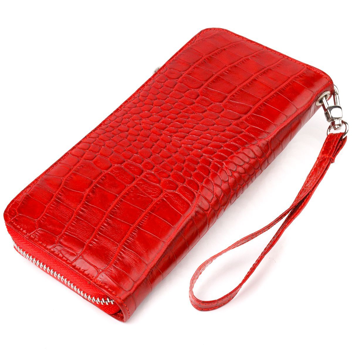 Горизонтальный яркий кошелек для женщин из натуральной фактурной кожи под крокодила Canpellini 21621 красный