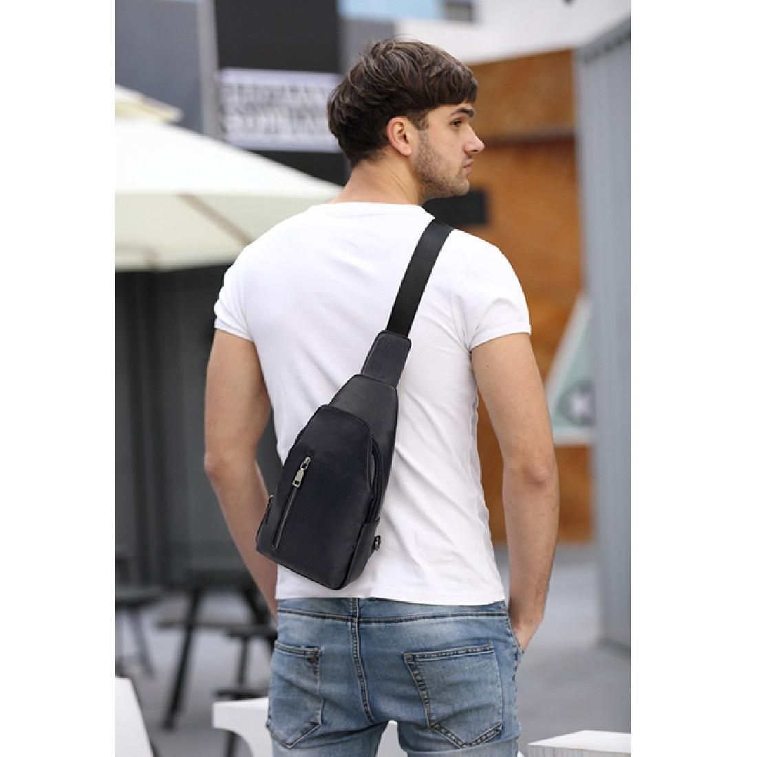 Сумка на одну шлейку Tiding Bag FL-A25F-5038A із натуральної шкіри у чорному кольорі. Розмір: 16 x 5,5 x 33см. Має два основні відділення - одне на змійці, і друге із закриттям на магнітну кнопку. З лицьового та з тильного боку також є додаткові вертикальні кишеньки на блискавках. Наплічний текстильний ремінь перестібається на зручний для Вас бік за допомогою карабіна, і регулюється по довжині, якщо це необхідно. Підкладка: текстиль. Колір: чорний. Колір фурнітури: срібло.
