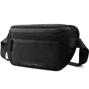 Класична текстильна сумка на пояс AT08-2119A пошита з міцного вологостійкого текстилю в чорному кольорі. Розміри: 35 x 8 x 20 см. Сумка має простий універсальний дизайн, що дає змогу легко комбінувати її з різним одягом. Буде чудовим доповненням до класичного, кежуал і спортивного образу. У виробі одне велике відділення, які закриваються на блискавку. З лицьового боку розташована горизонтальна кишеня, що закривається на блискавку. І всередині сумки відділення для дрібних предметів. Поясний ремінець текстильний, несьемний, регулюється за довжиною, розстібається за допомогою карабіна. З тильного боку кишеня, яка закривається на блискавку. Підкладка: текстиль. Колір: чорний. Колір фурнітури: чорний.