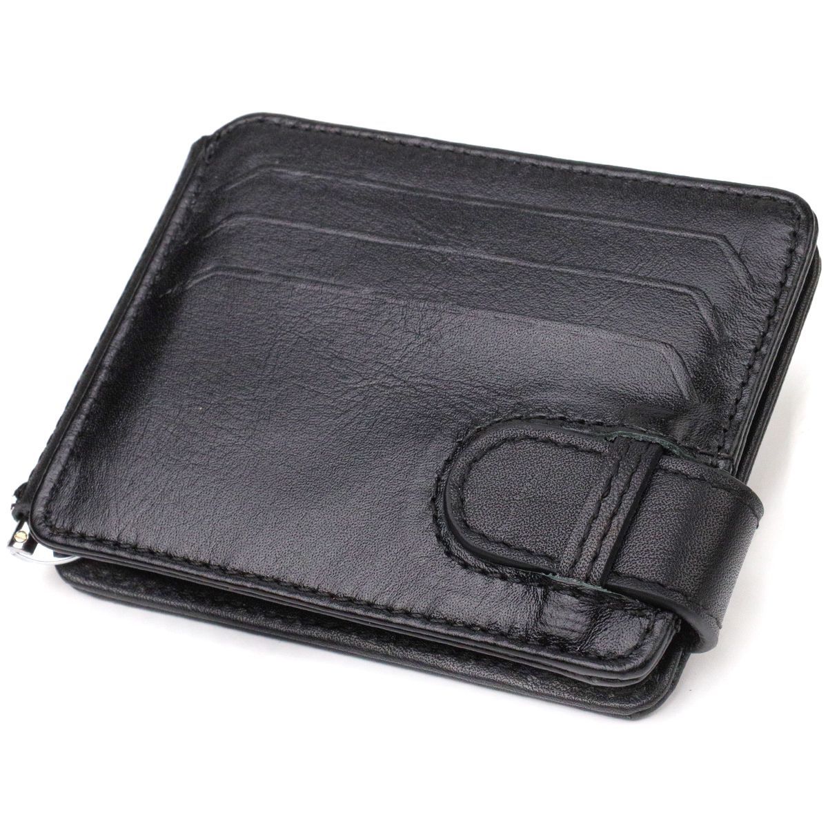 Классический надежный зажим для денег из натуральной гладкой кожи Canpellini 21939 черный