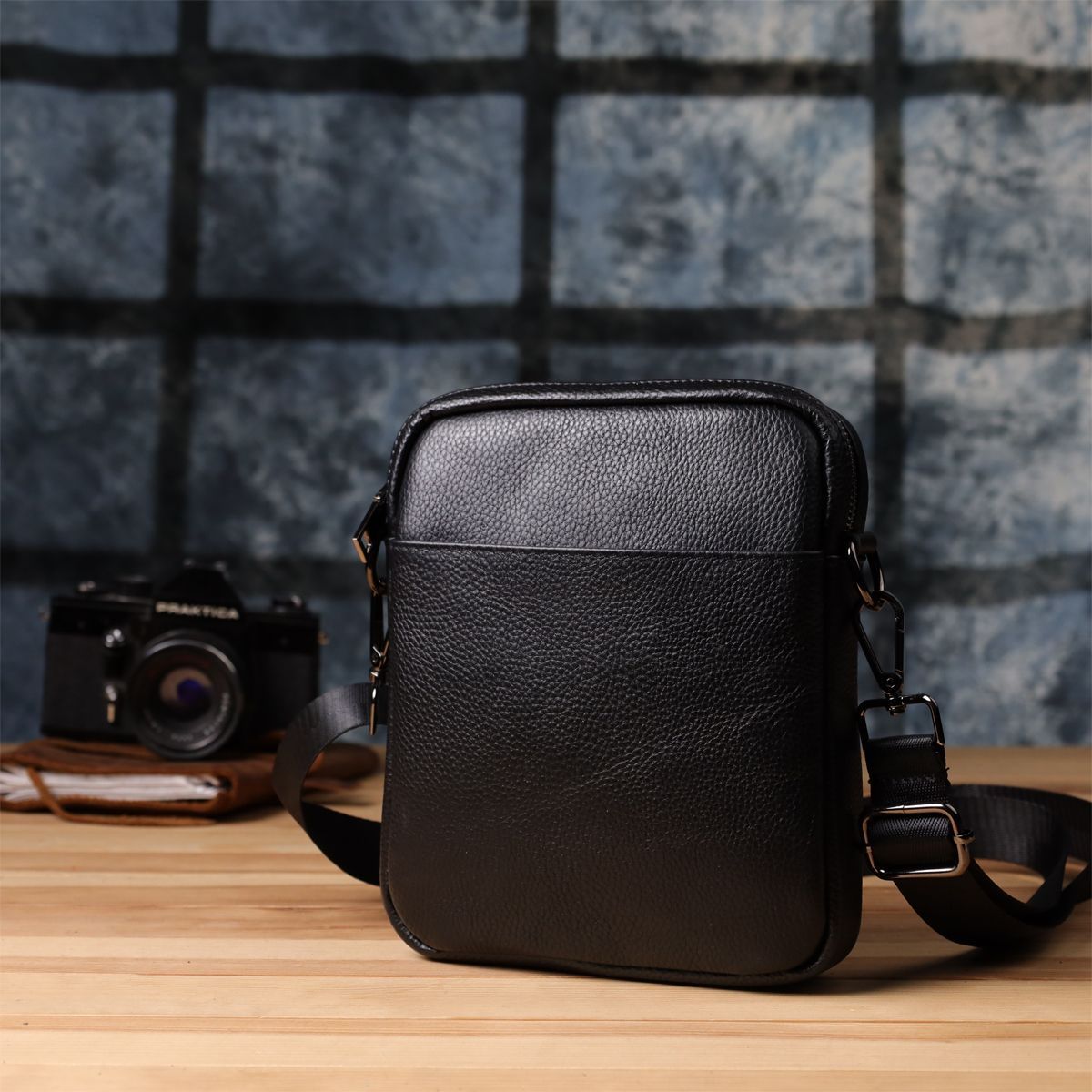 Компактна чоловіча сумка на плече з натуральної шкіри Vintage 23021 чорна