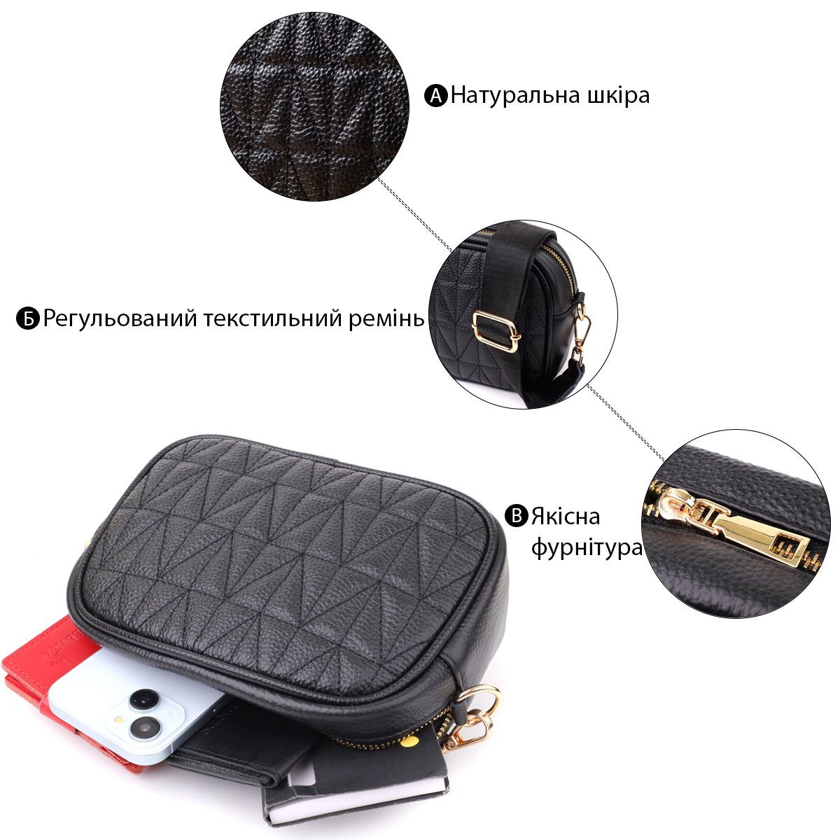 Це аксесуар, який стане вашим універсальним супутником – ідеально підходить для роботи, вечірніх прогулянок та зустрічей, підкреслюючи смак та увагу до деталей.