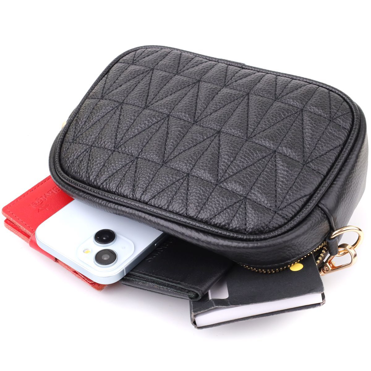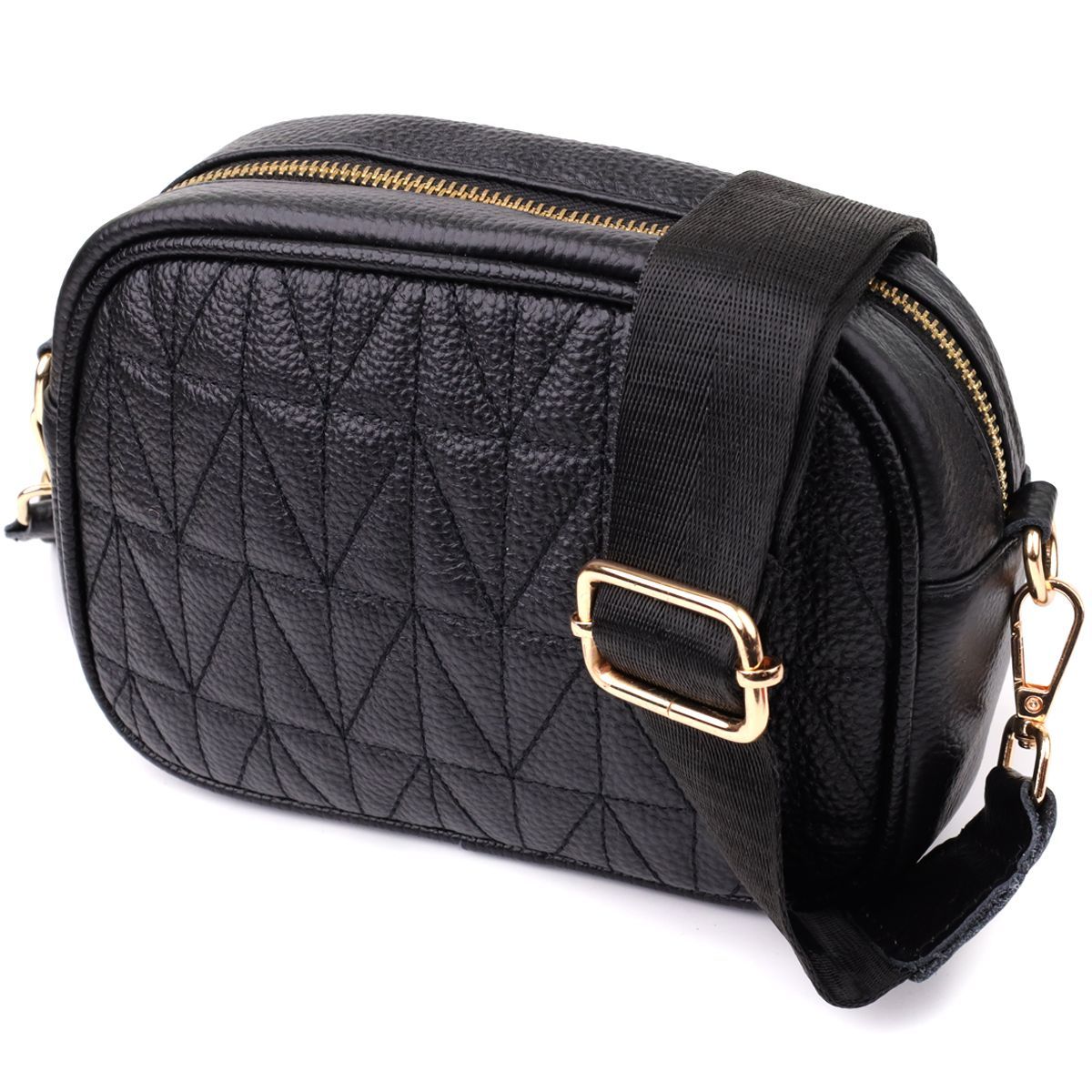 Компактна стьобана сумка для жінок з натуральної шкіри Vintage 22894 чорна