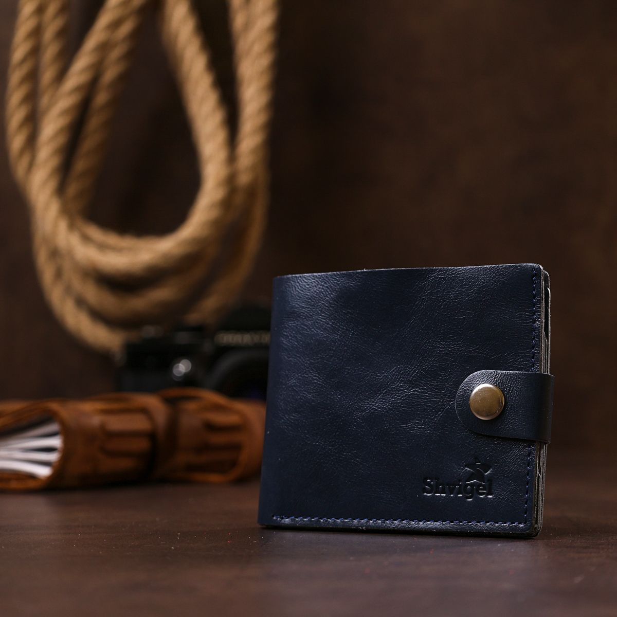 Компактное кожаное портмоне для мужчин Shvigel 16465 синее