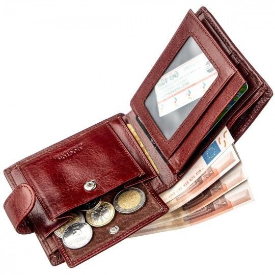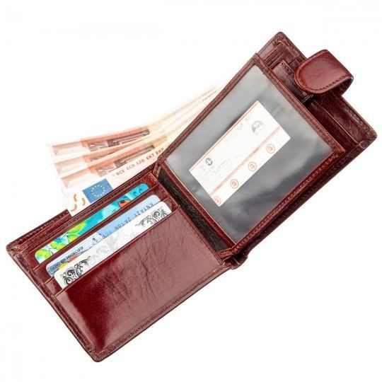 Компактний чоловічий гаманець з натуральної шкіри, має гарний, але не викликає червоно-коричневий колір. Підійде для тих, хто носить із собою завжди тільки найпотрібніше, при цьому Ви з подивом помітите, що в гаманець поміститься дуже багато потрібних Вам речей. Це і гроші, і картки, і, звичайно ж, документи. Такий гаманець має елегантний дизайн і ніжну на дотик поверхню шкіри, але при цьому вона дуже міцна та надійна. Дизайн такого гаманця передбачає можливість носити його як чоловікові, так і жінці. Упакований гаманець у міцну картонну коробку, тому він чудово підійде на подарунок!