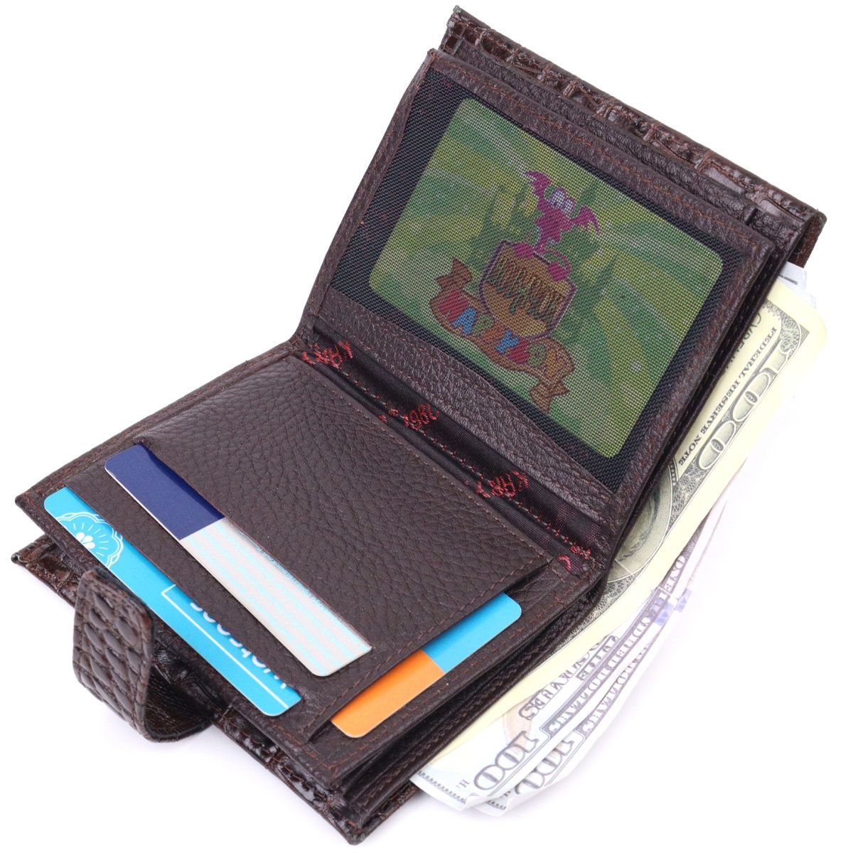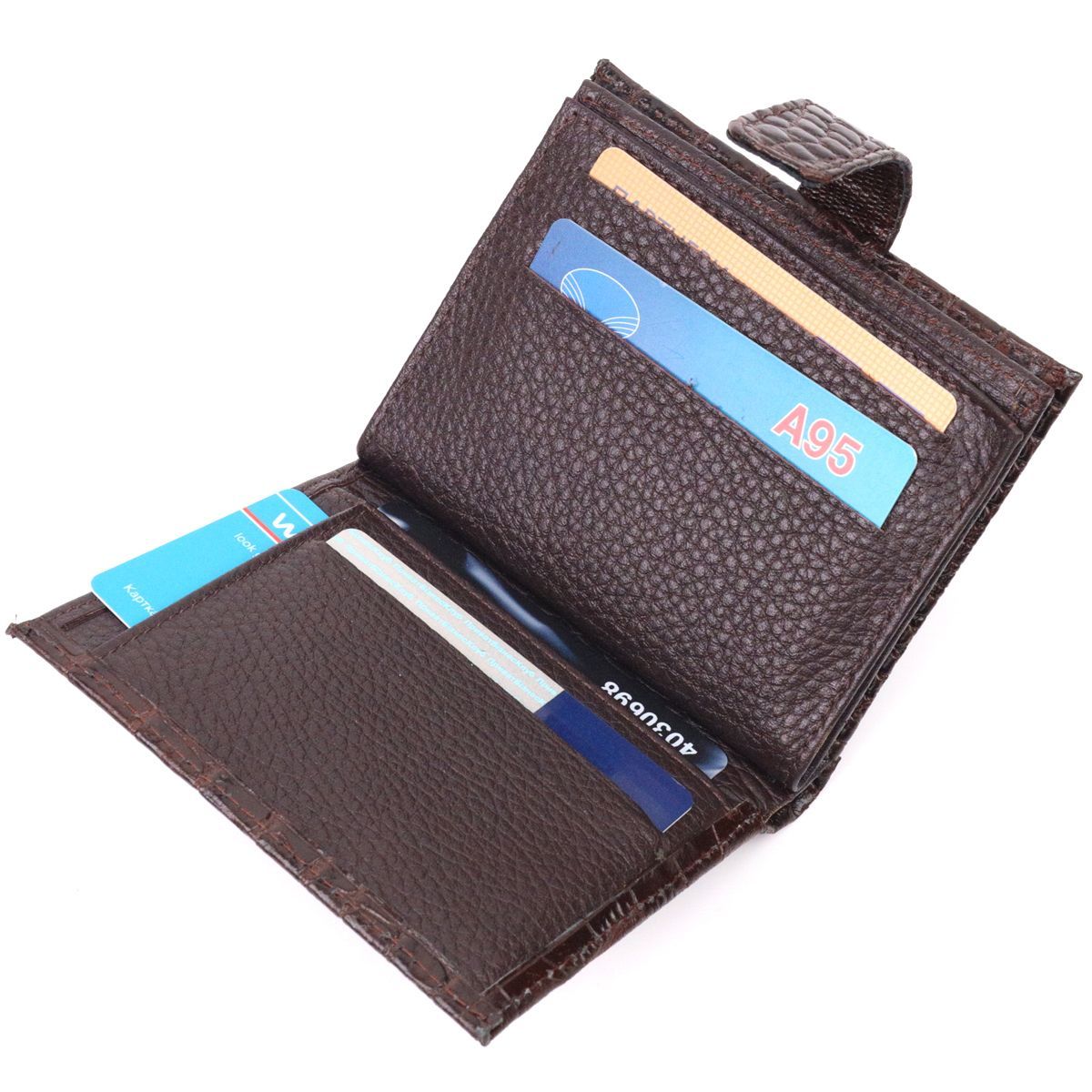 Компактный мужской кошелек из натуральной кожи с тиснением под крокодила KARYA 21386 коричневый