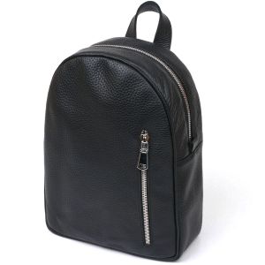 Женский стильный рюкзак компактного размера в современном и модном дизайне. Имеет зернистую фактуру и универсальный черный цвет, поэтому подойдет для использования в любое время года. Материал изготовления – натуральная кожа с улучшенными эксплуатационными характеристиками. Основное отделение закрывается на молнию, внутри также есть два кармана и один карман на внешней стороне.