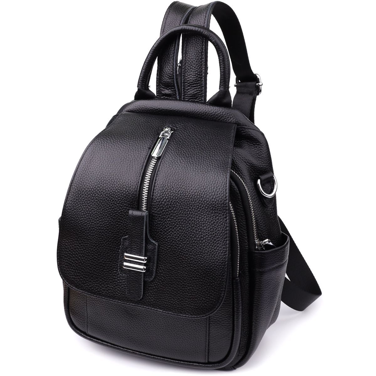 Компактний жіночий рюкзак з натуральної шкіри Vintage 23058 чорний