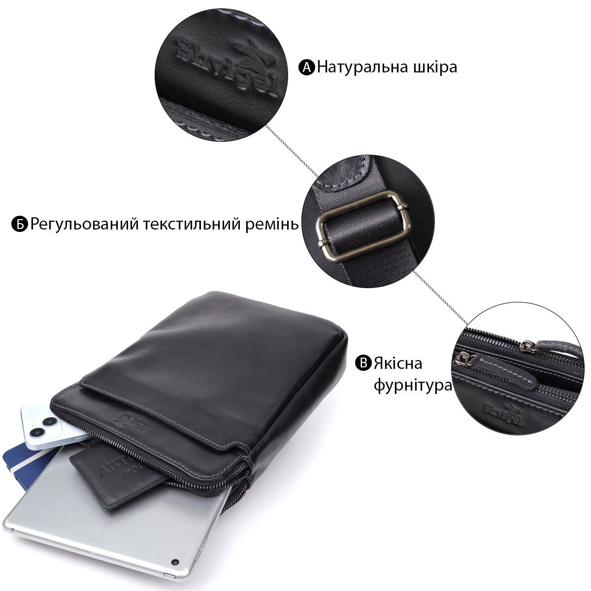 Красива чоловіча сумка через плече з гладкої натуральної шкіри Shvigel 20871_1 чорна