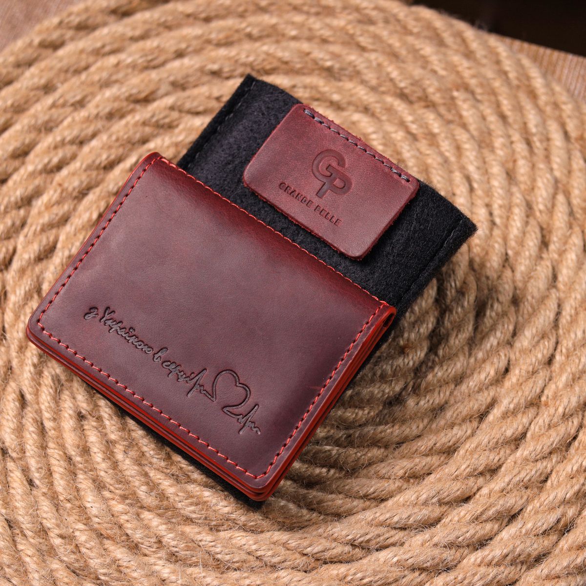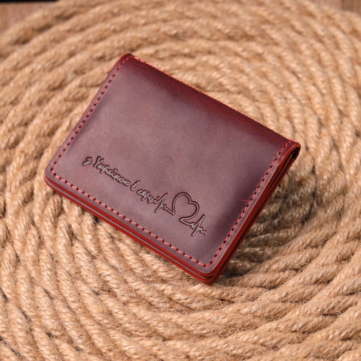Женская яркая обложка для авто документов с патриотической надписью "С Украиной в сердце". Изделие сшито из итальянской качественной кожи. По краям модель прошита красной строчкой в дизайне изделия. Изделие небольшого размера и легко уместится в карман или маленькую сумку. В комплекте изделия идет фирменный фетровый чехол. Кожаные изделия всегда считались отличным подарком, независимо от пола и возраста.