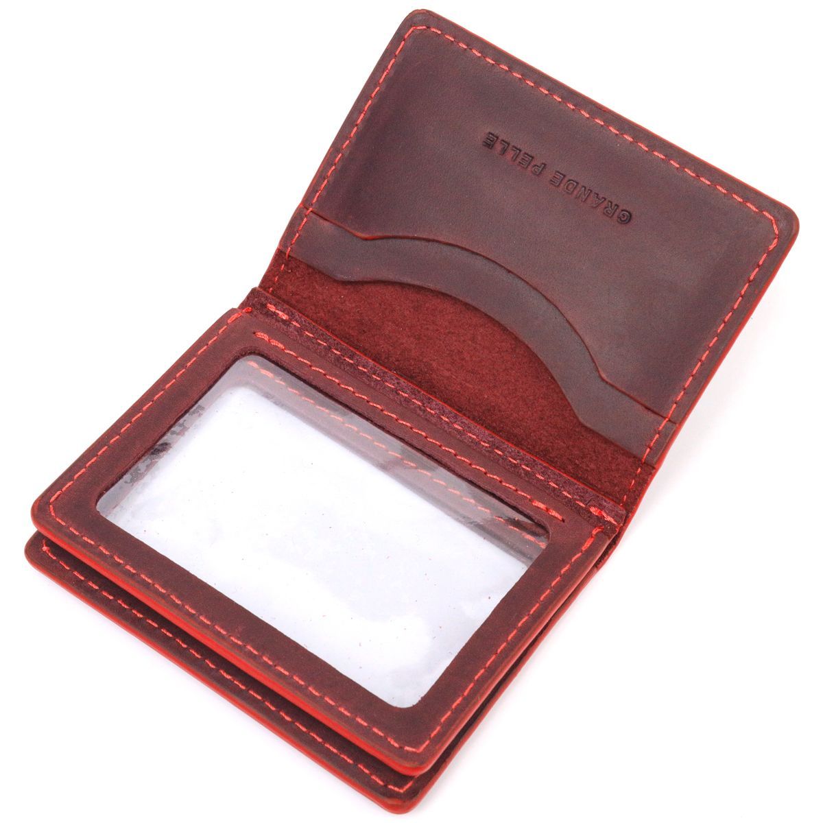 Красивая обложка на документы для женщин в винтажной коже. Сердце Grande Pelle 16713 бордовая