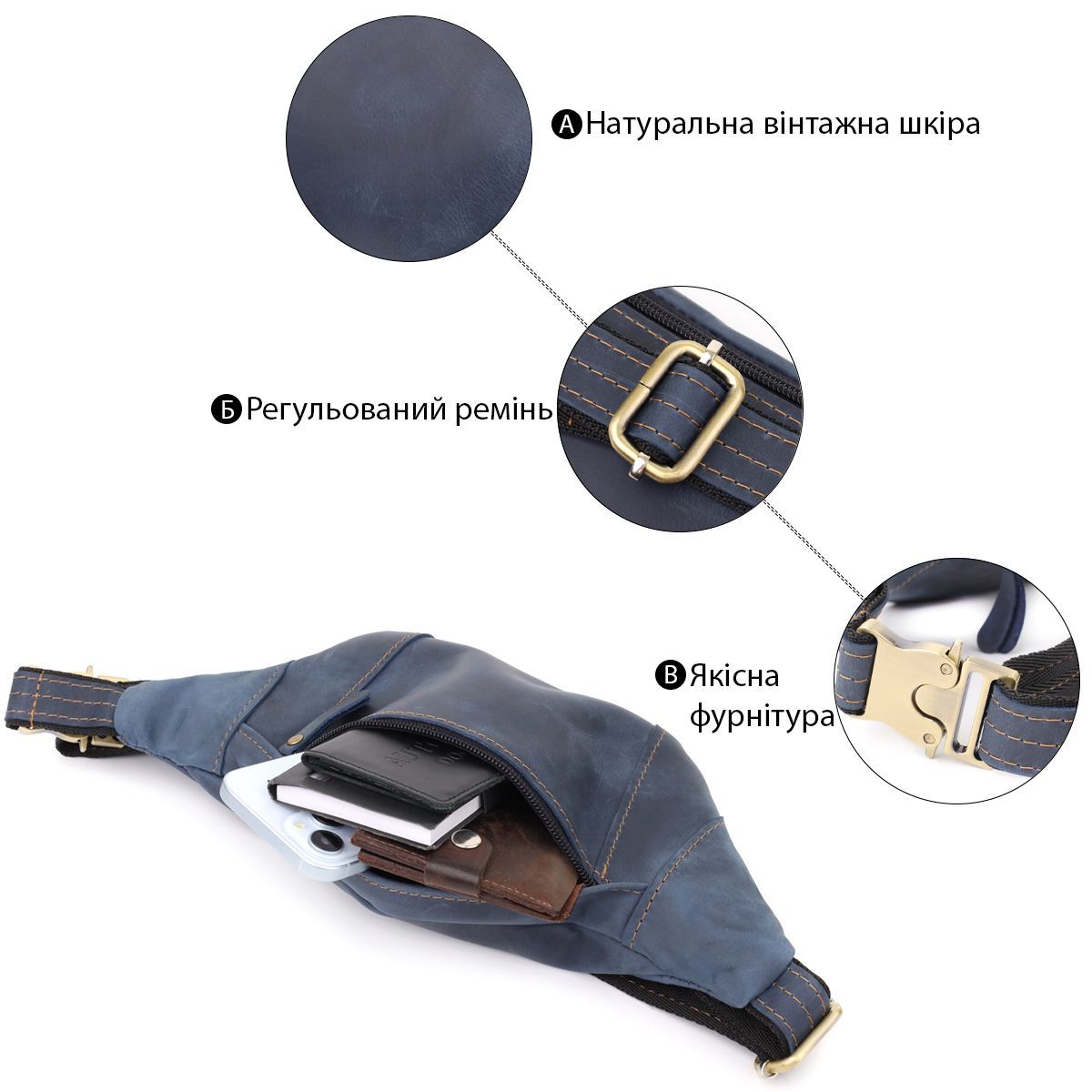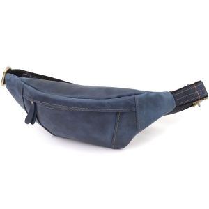 Красива сумка-бананка для чоловіків з натуральної vintage шкіри Shvigel 23123 cиня