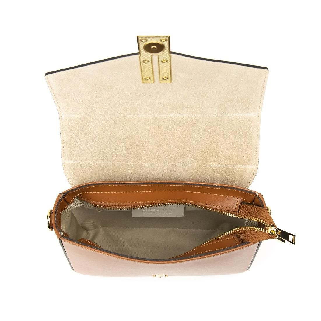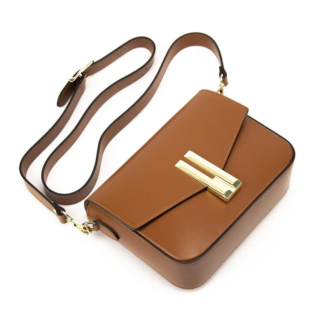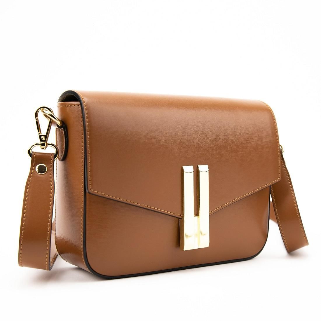 Крос-боді шкіряне з акцентним замком колір карамель Firenze Italy F-IT-9558C