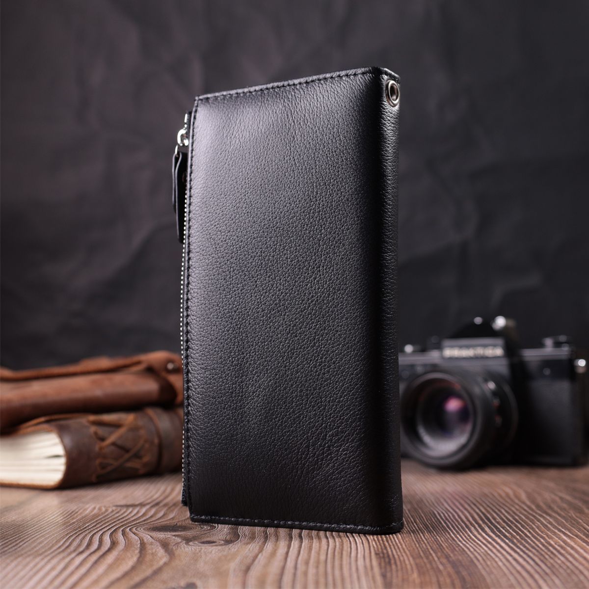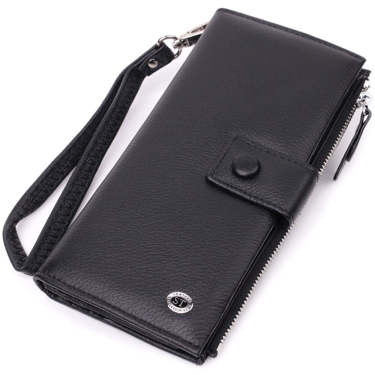 Лаконічний жіночий вертикальний гаманець-клатч із натуральної шкіри ST Leather 22537 чорний