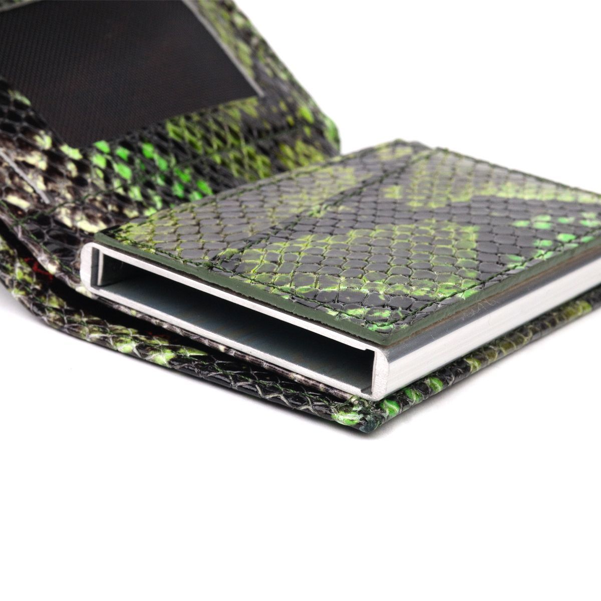 Лакированная визитница из натуральной фактурной кожи под змею KARYA 20987 зеленая