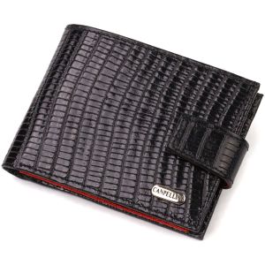 Комплектный лакированный портмоне для мужчин из натуральной фактурной кожи Canpellini 21751 черный
