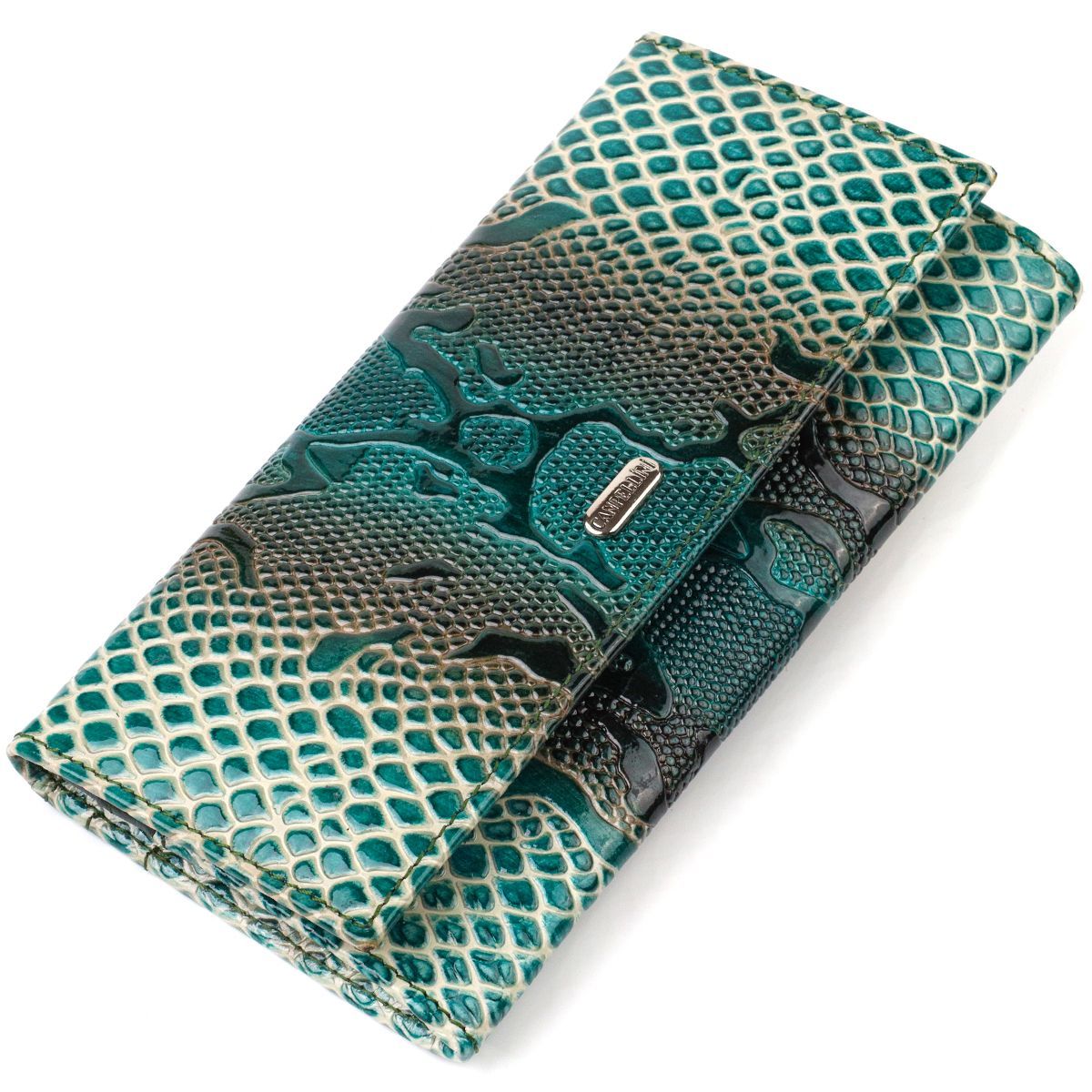 Лакированный кошелек для женщин из натуральной фактурной кожи с тиснением под рептилию Canpellini 21824 зеленый