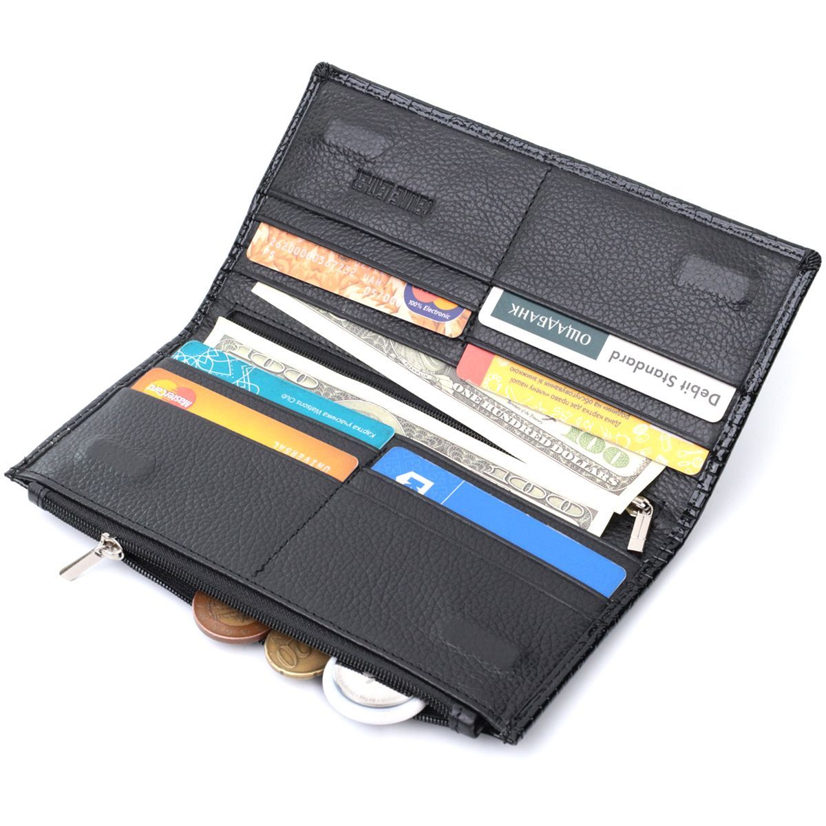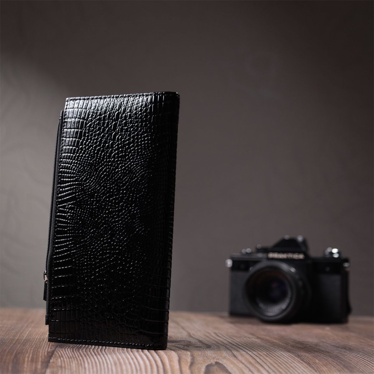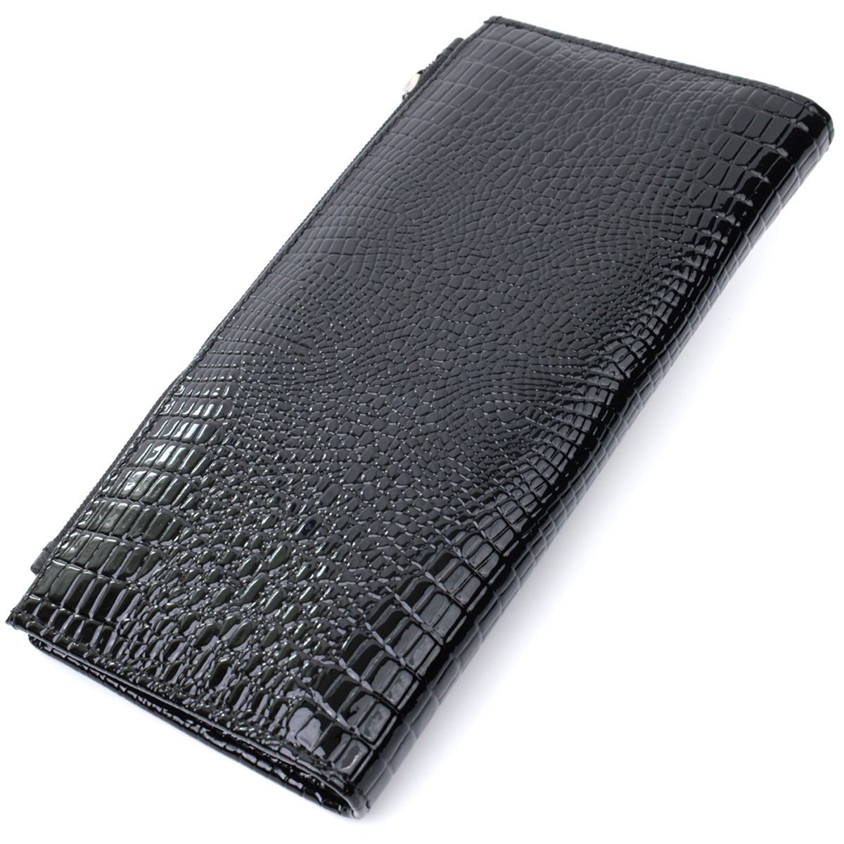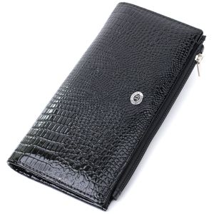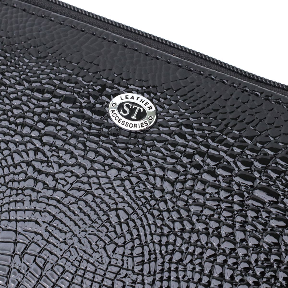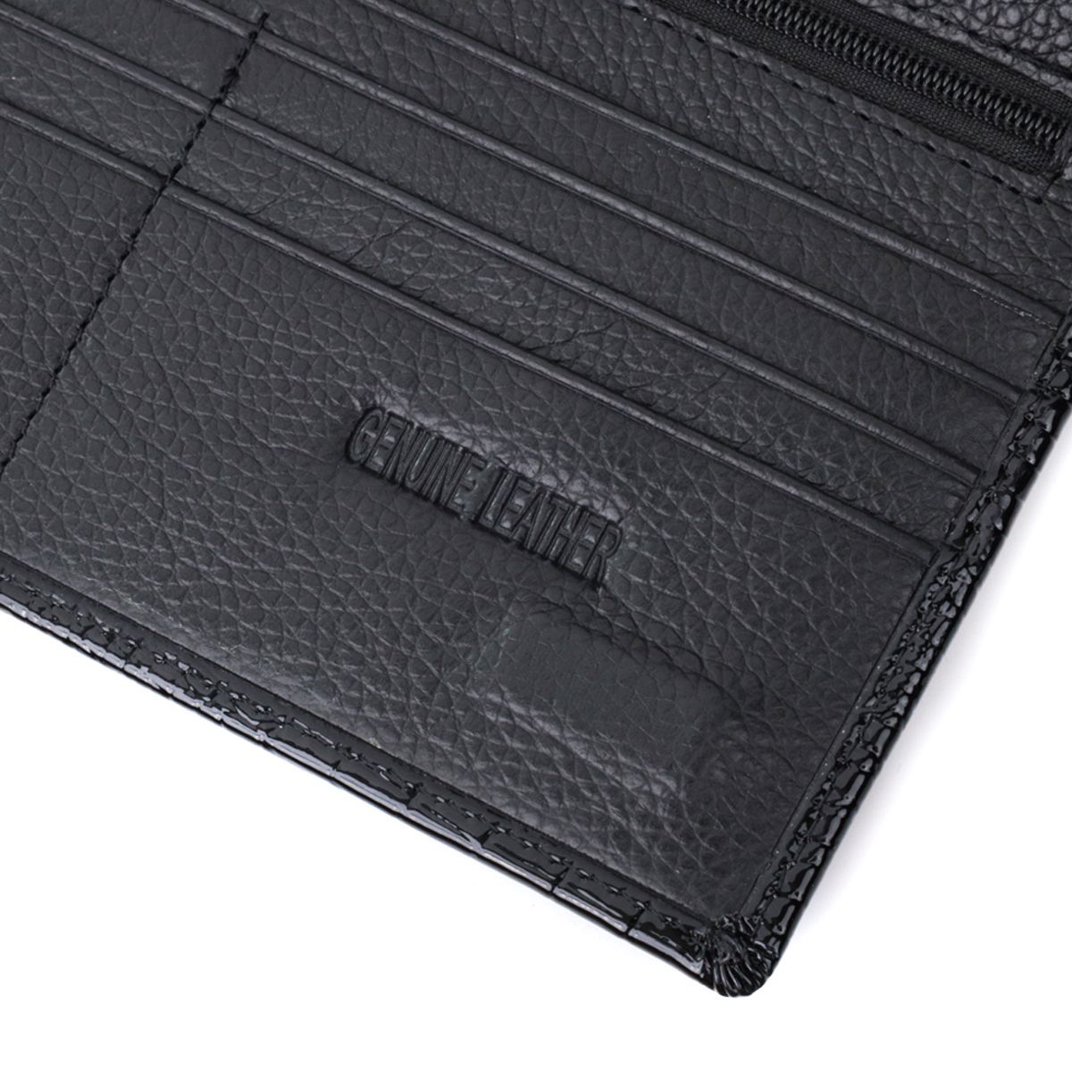 Лакований тонкий гаманець з фактурою під рептилію з натуральної шкіри ST Leather 22716 чорний