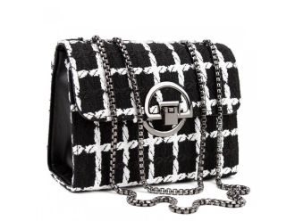 Маленька твідова сумочка на ланцюжку Lilly P2-1520AW чорно-біла