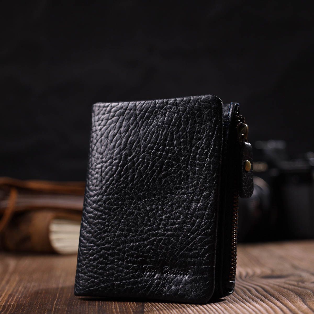 Небольшой кошелек для мужчин и женщин из натуральной кожи. Аксессуар состоит из одного отделения для купюр, шести ячеек для пластиковых карт, трех прилегающих карманов и монетницы на молнии. В изделии использована качественная фурнитура. Закрывается кошелек на кнопку. Покупая этот кожаный кошелек, Вы не только приобретаете стильную вещь, но и получаете качественный аксессуар, который прослужит не один год.