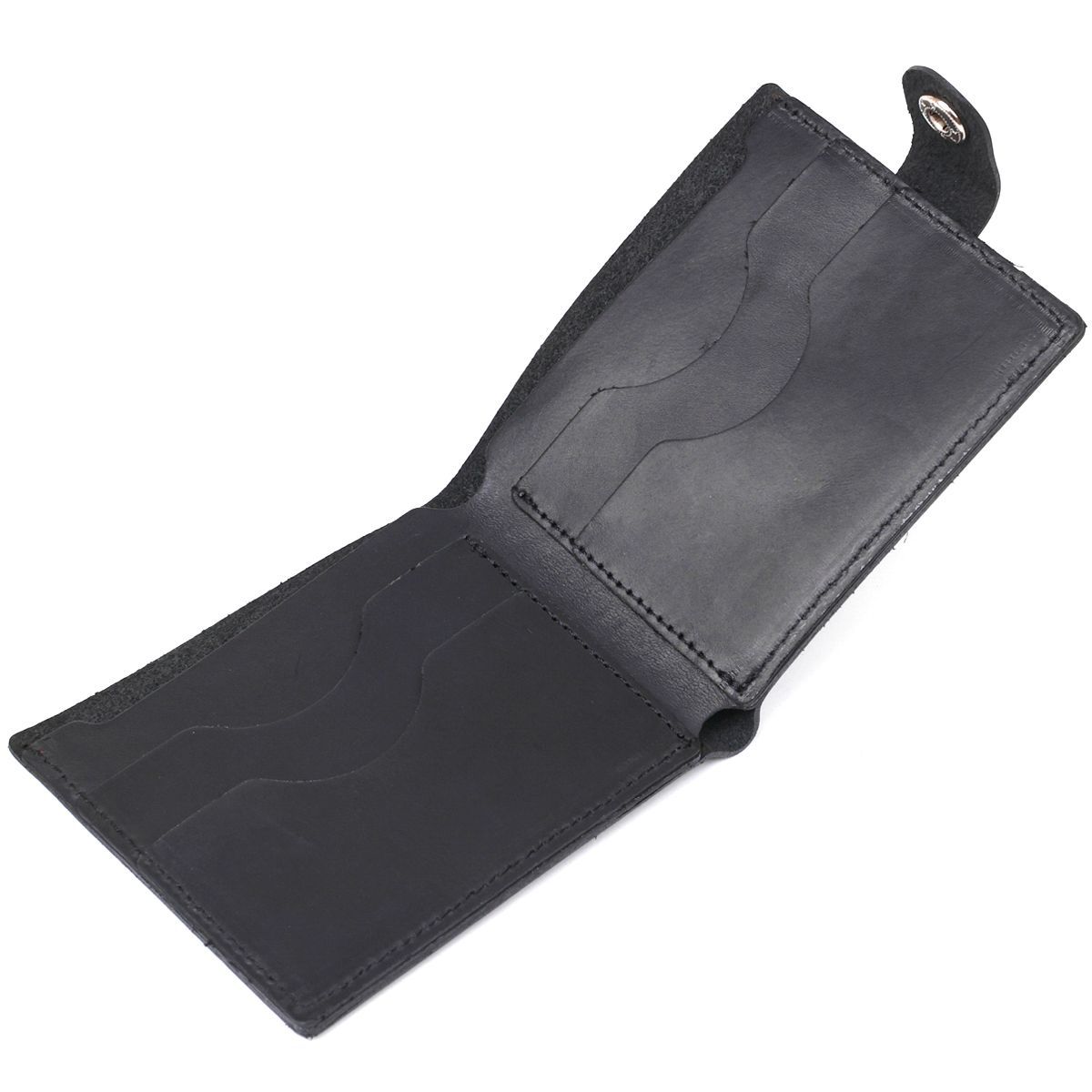 Классический мужской портмоне в винтажном стиле и практическом дизайне. Материал изготовления – натуральная кожа высокого класса с отличными прочностными показателями. Цвет изделия – универсальный черный в матовом исполнении, фактура – гладкая. Внутри аксессуара есть вместительное отделение для купюр и несколько слотов для карточек.