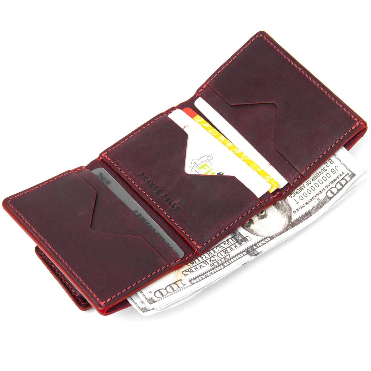 Матовый винтажный портмоне Grande Pelle 11454 бордовый