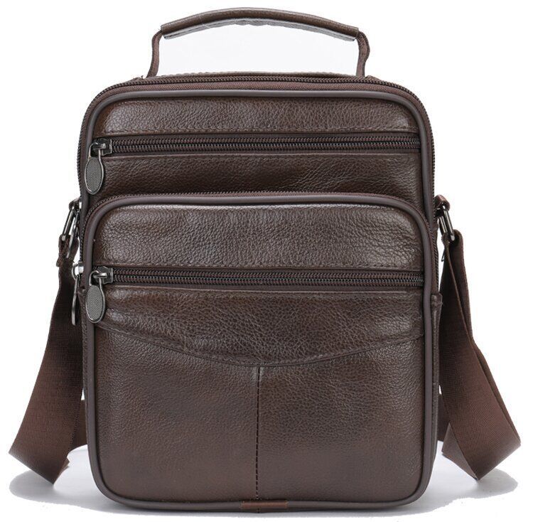 Качественная мужская сумка из натуральной кожи. Изделие выполнено из зернистой кожи коричневого цвета. Внутри аксессуара плотная текстильная подкладка коричневого цвета. Сумка станет вашим идеальным вариантом на каждый день. Модель очень удобна. Классический дизайн никогда не выйдет из моды. Такая сумка подойдет под любые вещи из гардероба. Модель дополнена качественной фурнитурой в дизайне изделия.