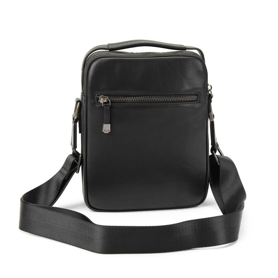 Чоловіча шкіряна сумка Tavinchi TV-SM8-1025A виготовлена з натуральної шкіри, що має гладку поверхню. Особливості: розміри сумки становлять 18 х 23 х 8 см. Месенджер має два відділення які закриваються на блискавку. З лицьового боку розташована кишеня на блискавці. Із заднього боку горизонтальна кишеня на блискавці. Месенджер відмінно тримає форму. Текстильний плечовий ремінь регулюється по довжині. У сумці є зручна коротка ручка, що забезпечує комфортне перенесення виробу. Підкладка: текстиль. Колір: чорний. Колір фурнітури: темне срібло.