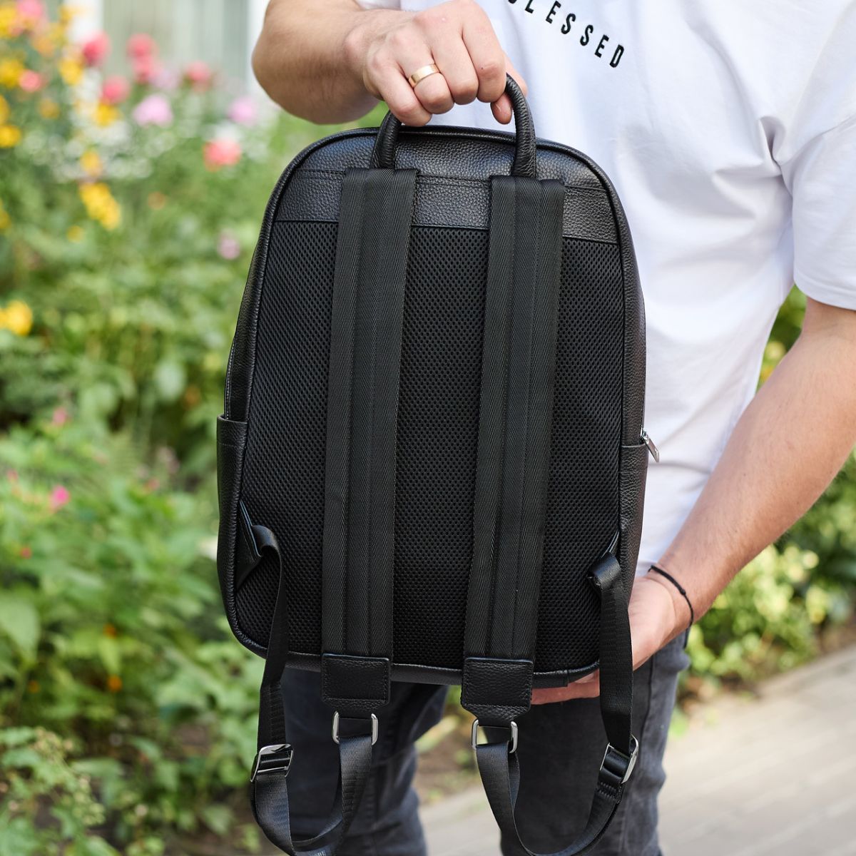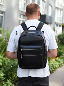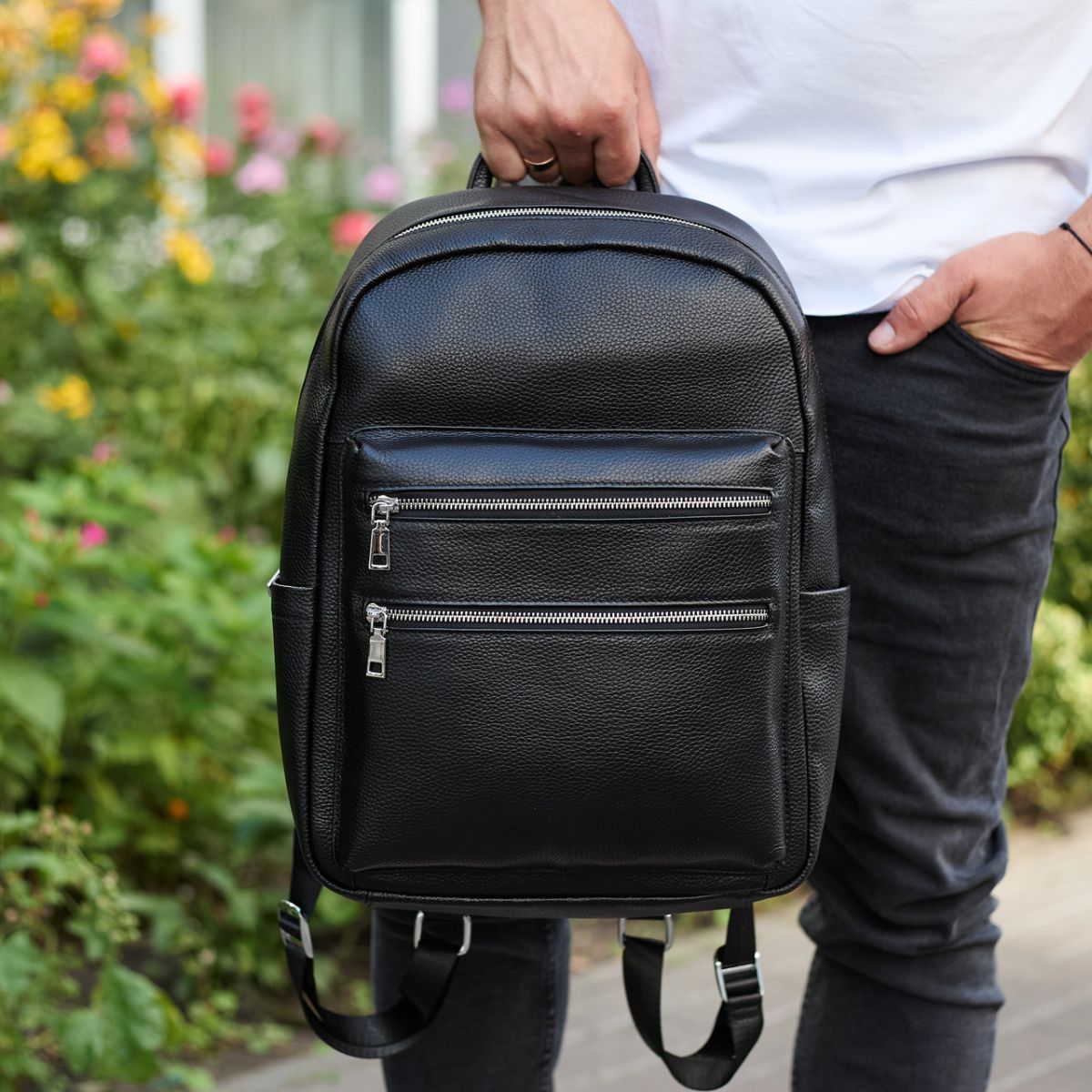 Міський чоловічий рюкзак із натуральної шкіри для ноутбука та документів чорний TD-81074 Tiding Bag
