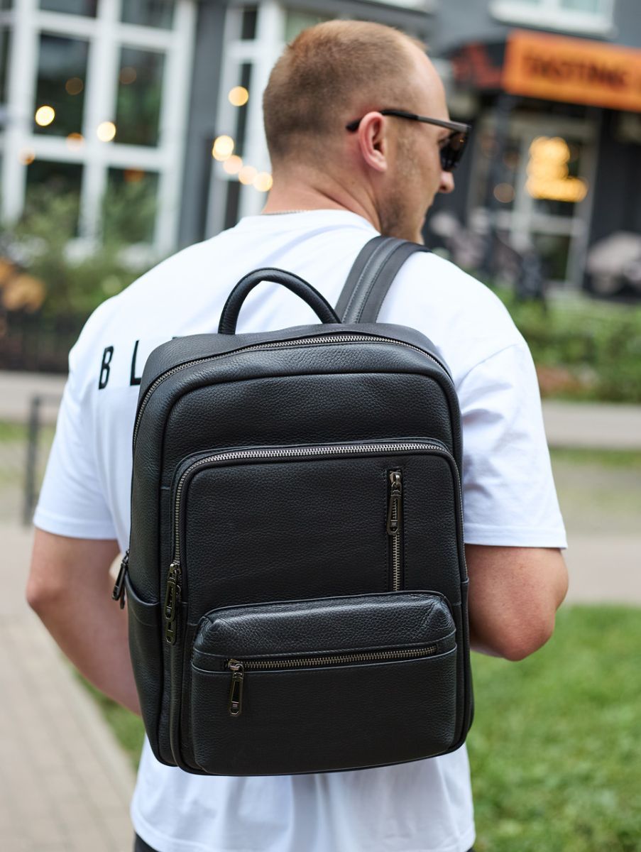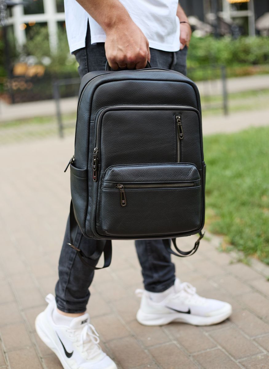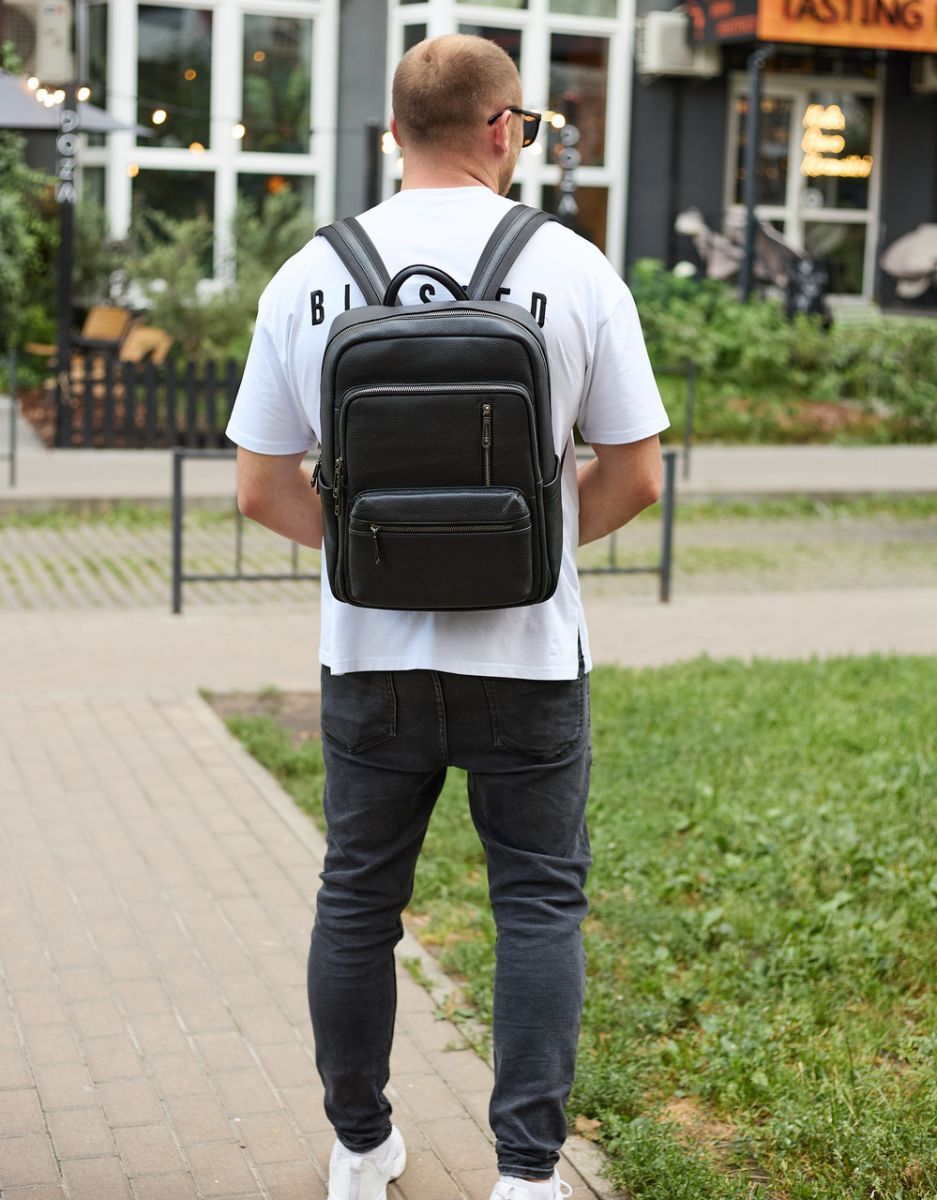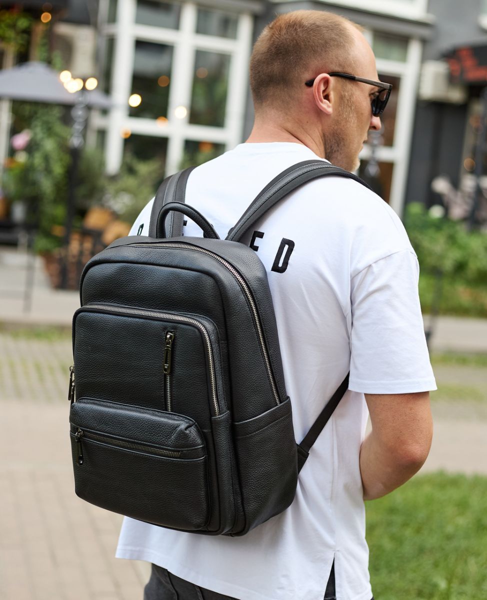 Міський чоловічий рюкзак із натуральної шкіри для роботи та подорожей чорний TD-86921 Tiding Bag