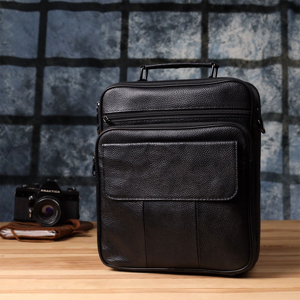 Містка чоловіча сумка з ручкою для перенесення в руці з натуральної шкіри Vintage 23023 чорна