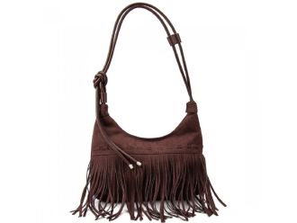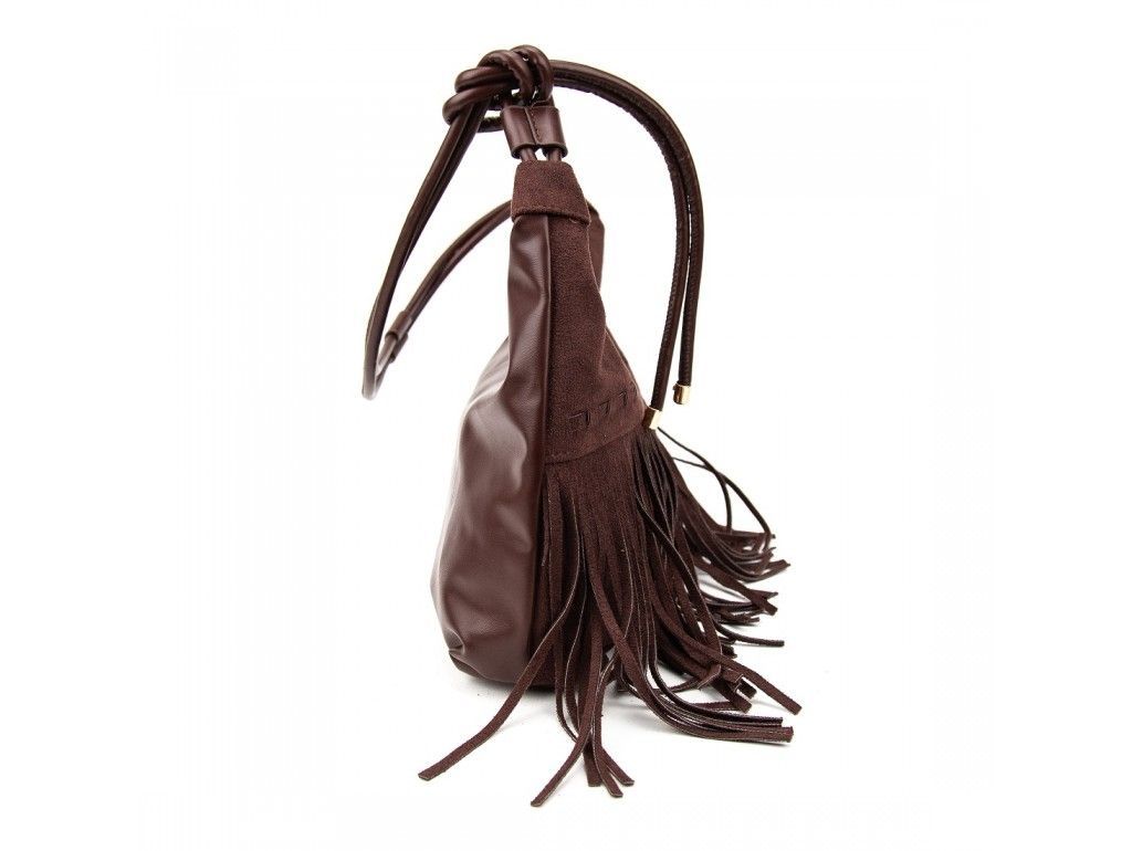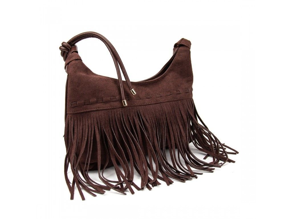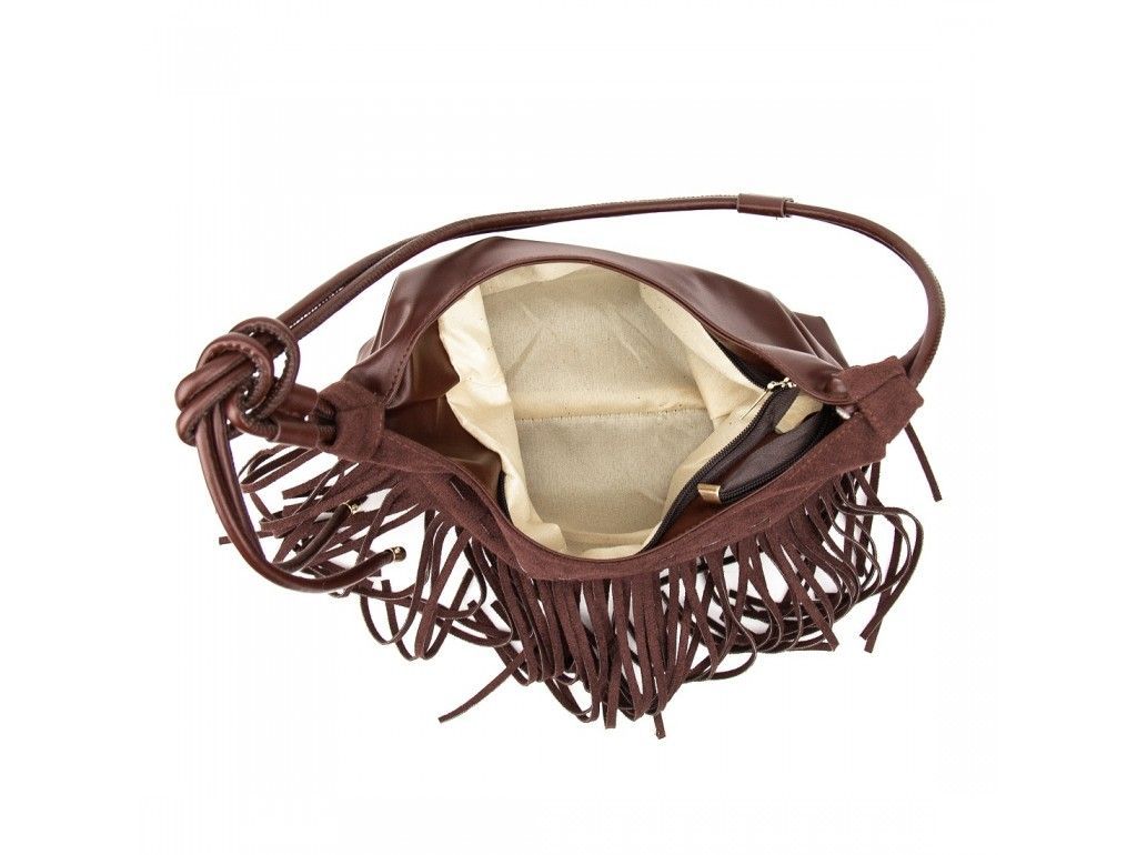 Містка замшева сумка з бахромою Lilly P2-9352DB темно коричнева