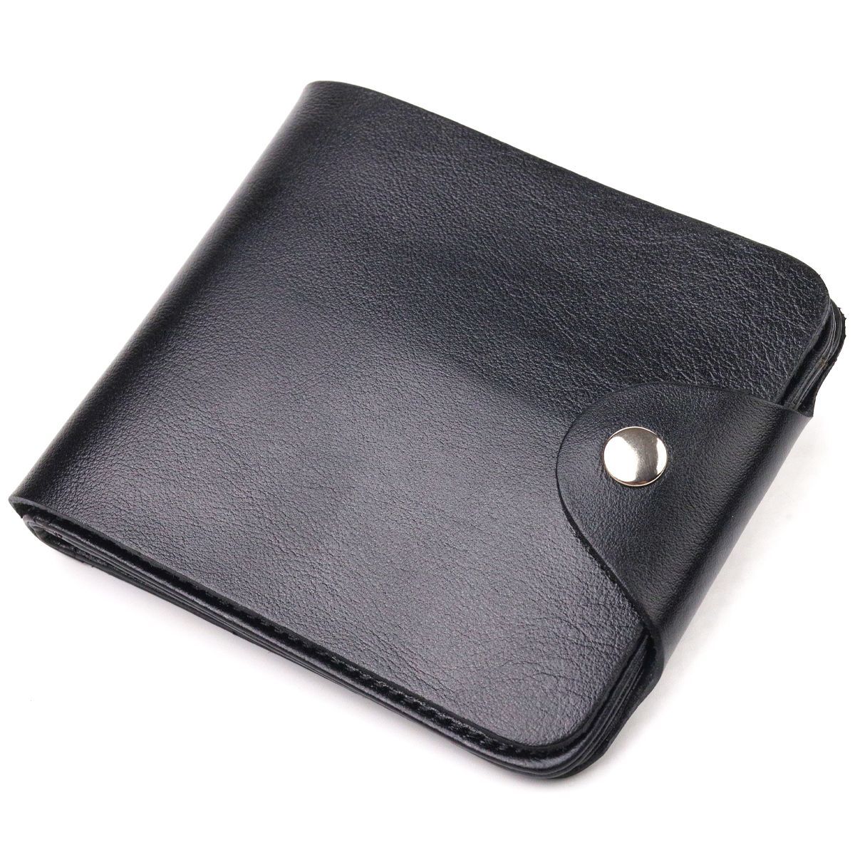 Вместительное мужское портмоне в два сложения из натуральной гладкой кожи Canpellini 21573 черное