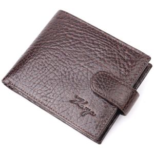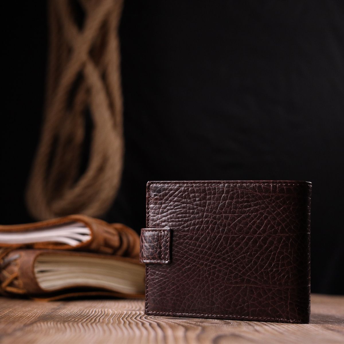 Вместительный кошелек мужской с хлястиком из натуральной кожи KARYA 21078 коричневый