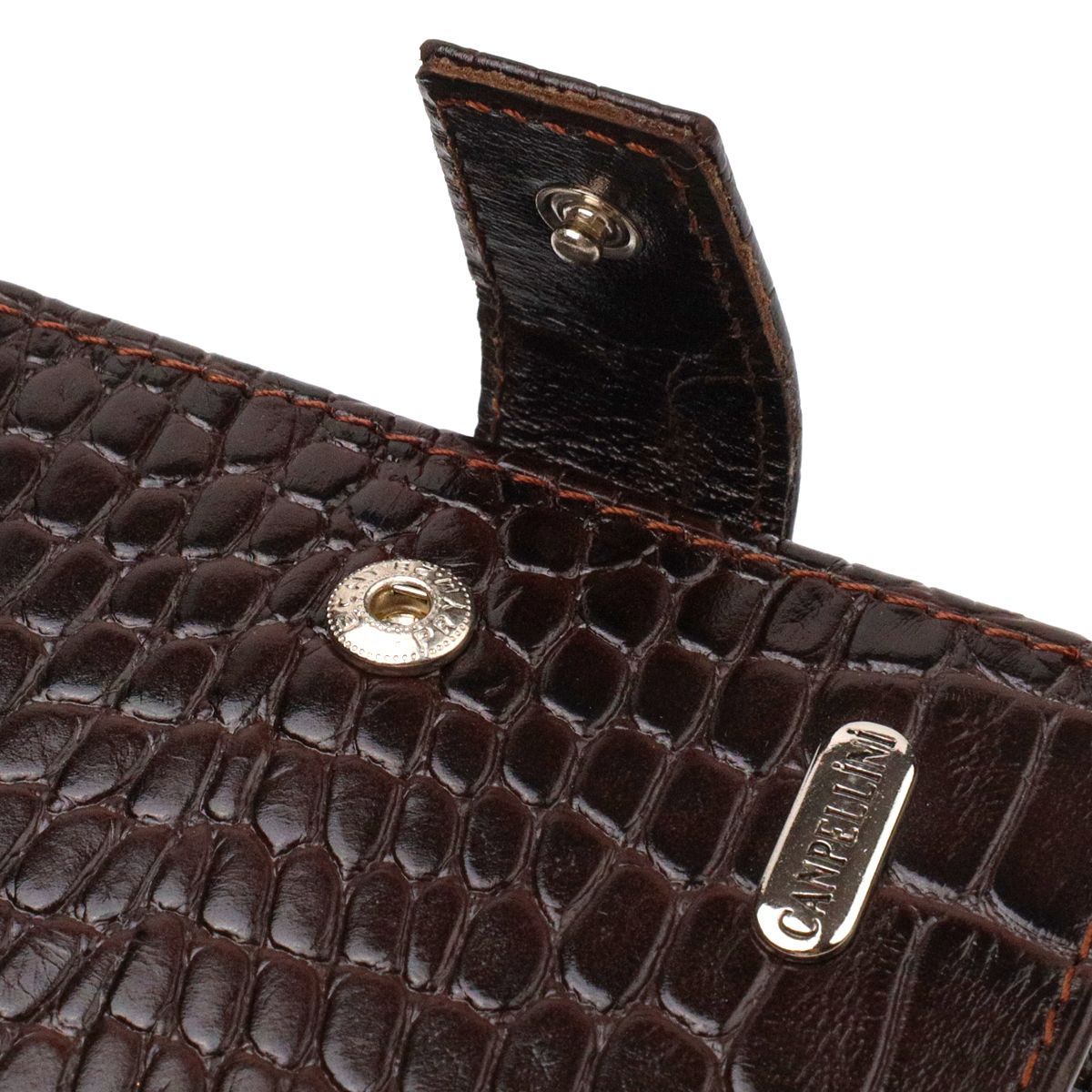 Вместительный мужской кошелек из натуральной фактурной кожи с тиснением под крокодила Canpellini 21788 коричневый