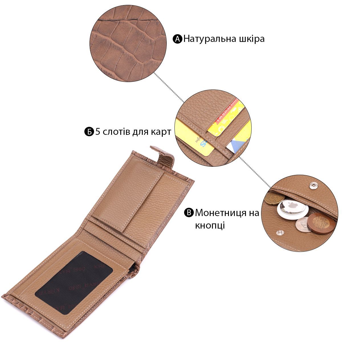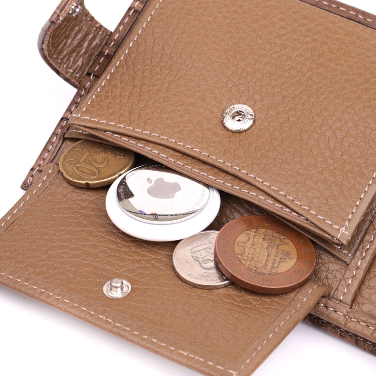 - монетниця, що закривається клапаном на кнопку;