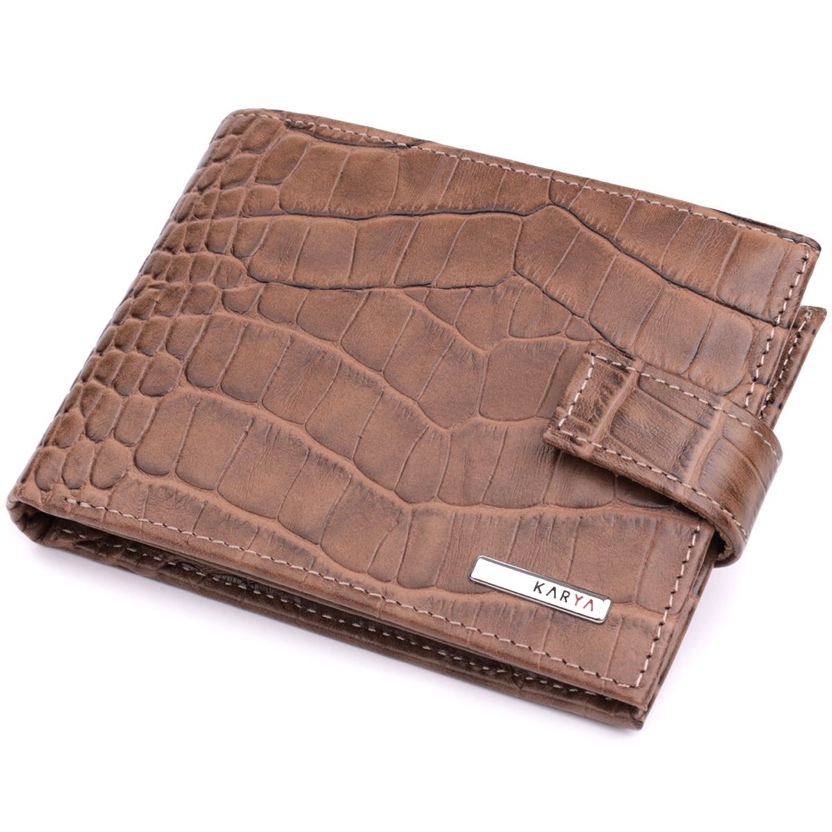Місткий чоловічий гаманець з натуральної шкіри KARYA 22854 коричневий