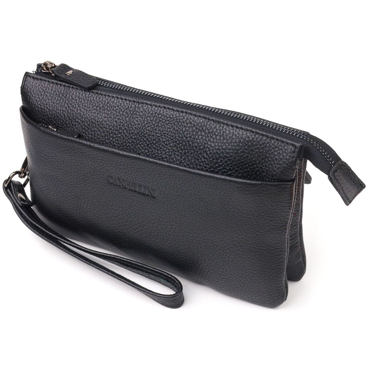 Вместительный мужской клатч из натуральной зернистой кожи Canpellini 21557 черный