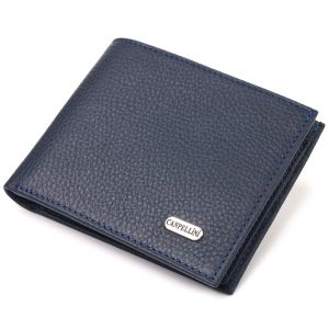 Вместительный кошелек для мужчин в два сложения из натуральной кожи флотарий Canpellini 21581 синий