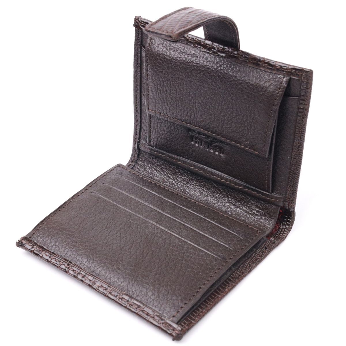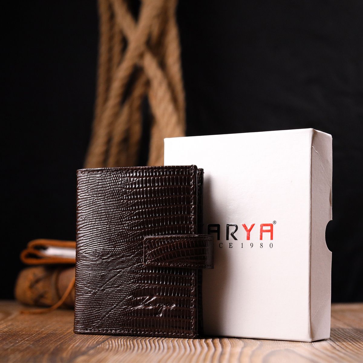 Вместительный вертикальный мужской кошелек из фактурной кожи KARYA 20991 коричневый