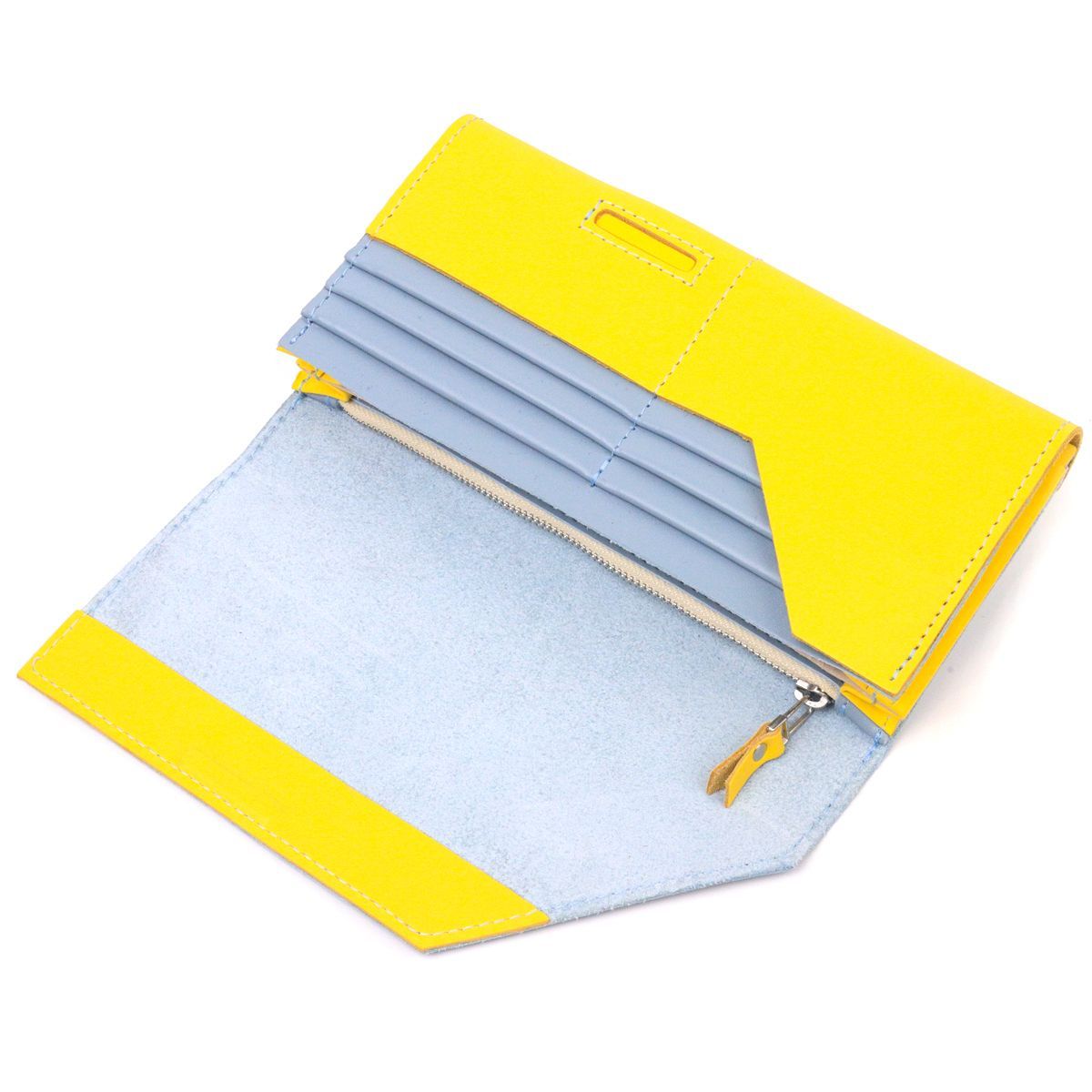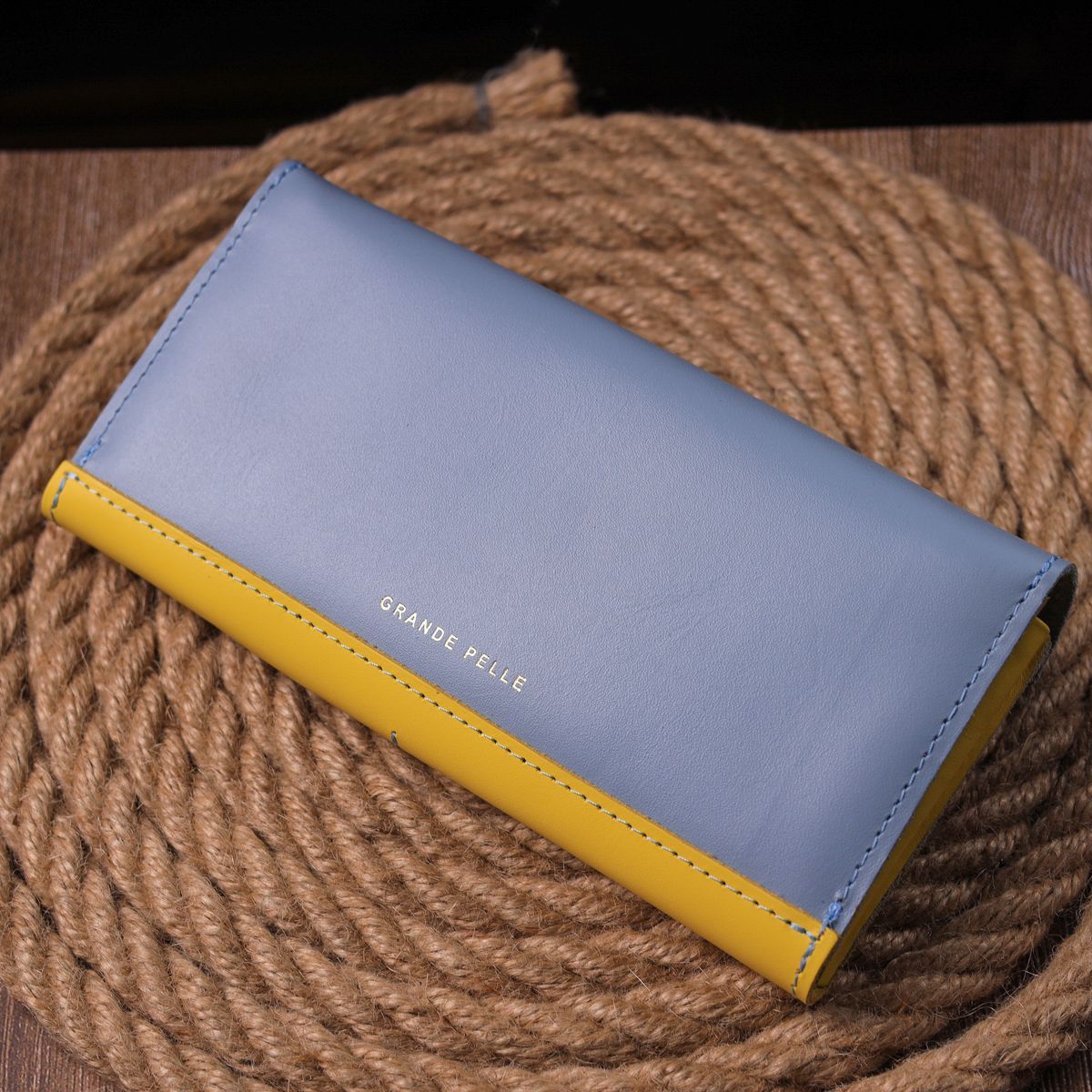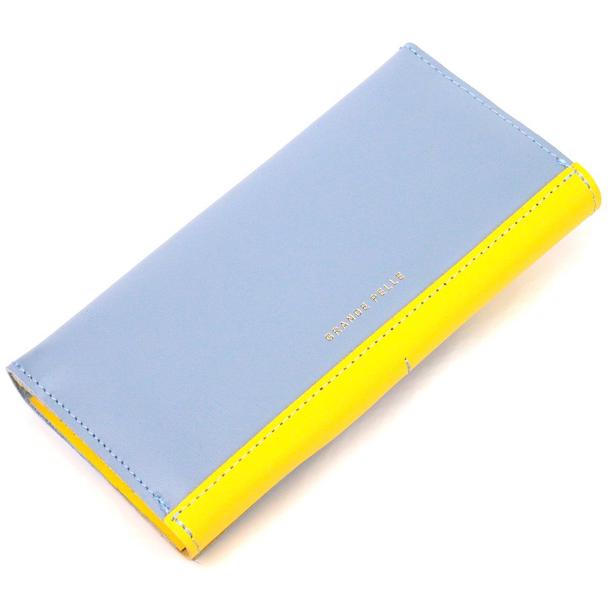 Вместительный женский кошелек комби двух цветов Сердце Grande Pelle 16740 желто-синий