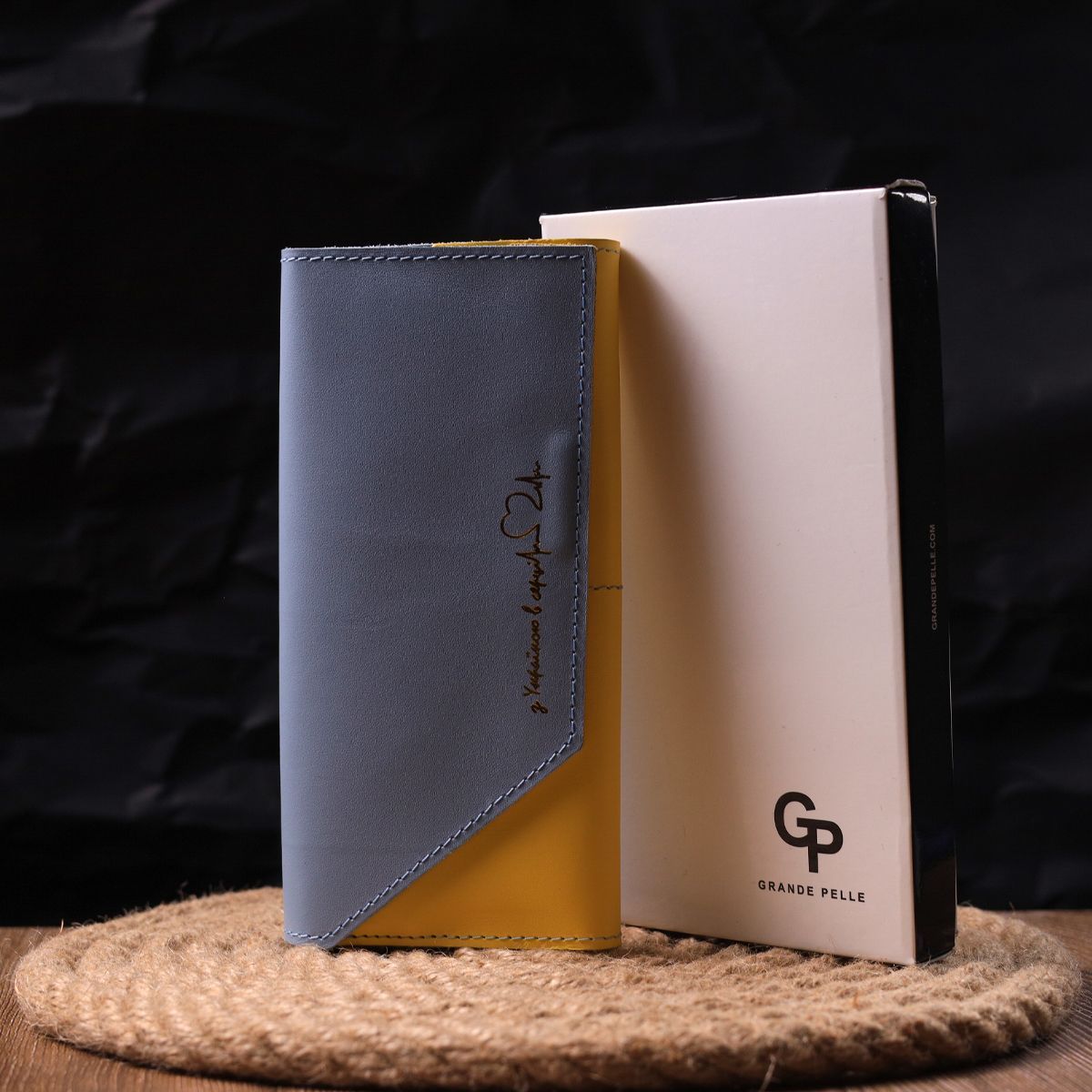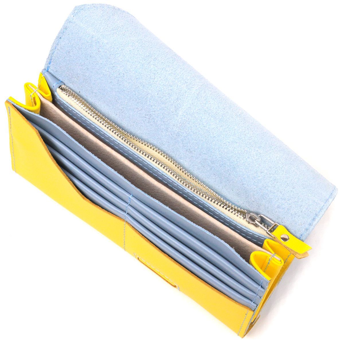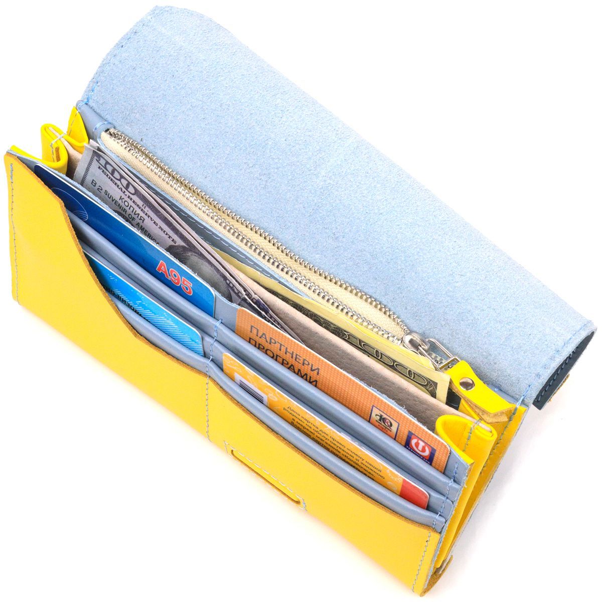 Вместительный женский кошелек комби двух цветов Сердце Grande Pelle 16740 желто-синий