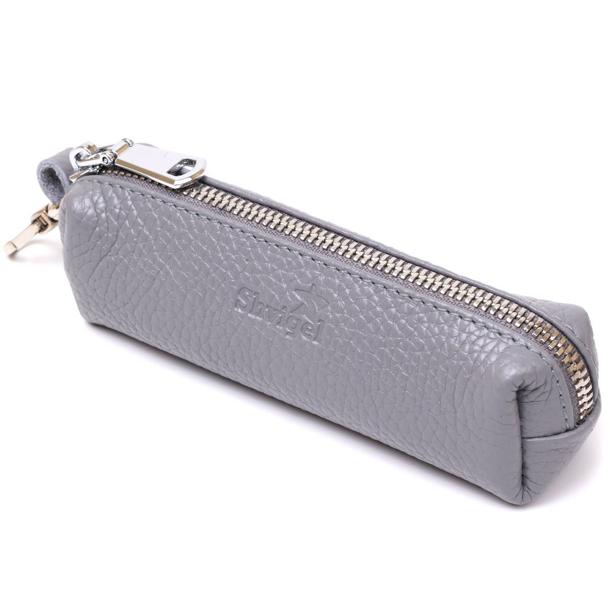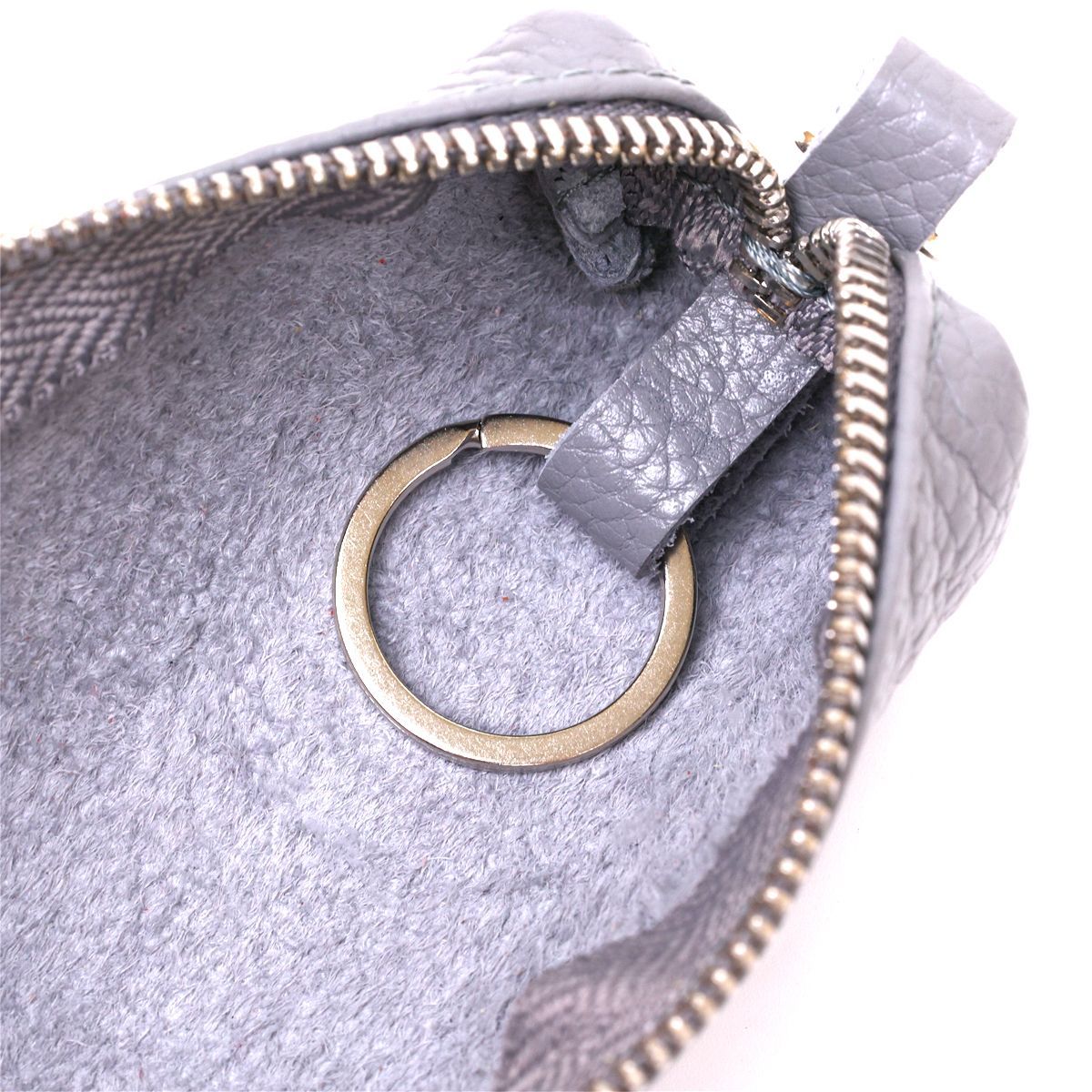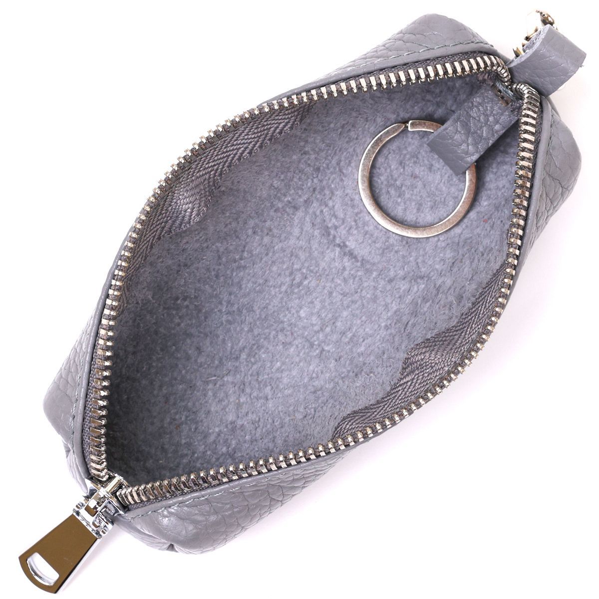 Великолепная ключница в красивом трендовом сером цвете. Материал изготовления – натуральная кожа высокого качества с отличными характеристиками. Закрывается аксессуар на молнию, внутри есть металлическое кольцо для ключей, снаружи – карабин. Фактура – зернистая и очень приятная на ощупь.