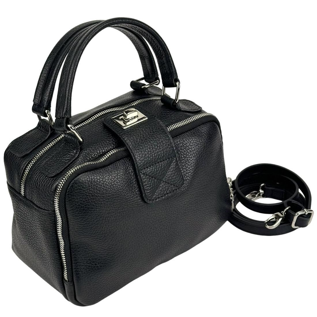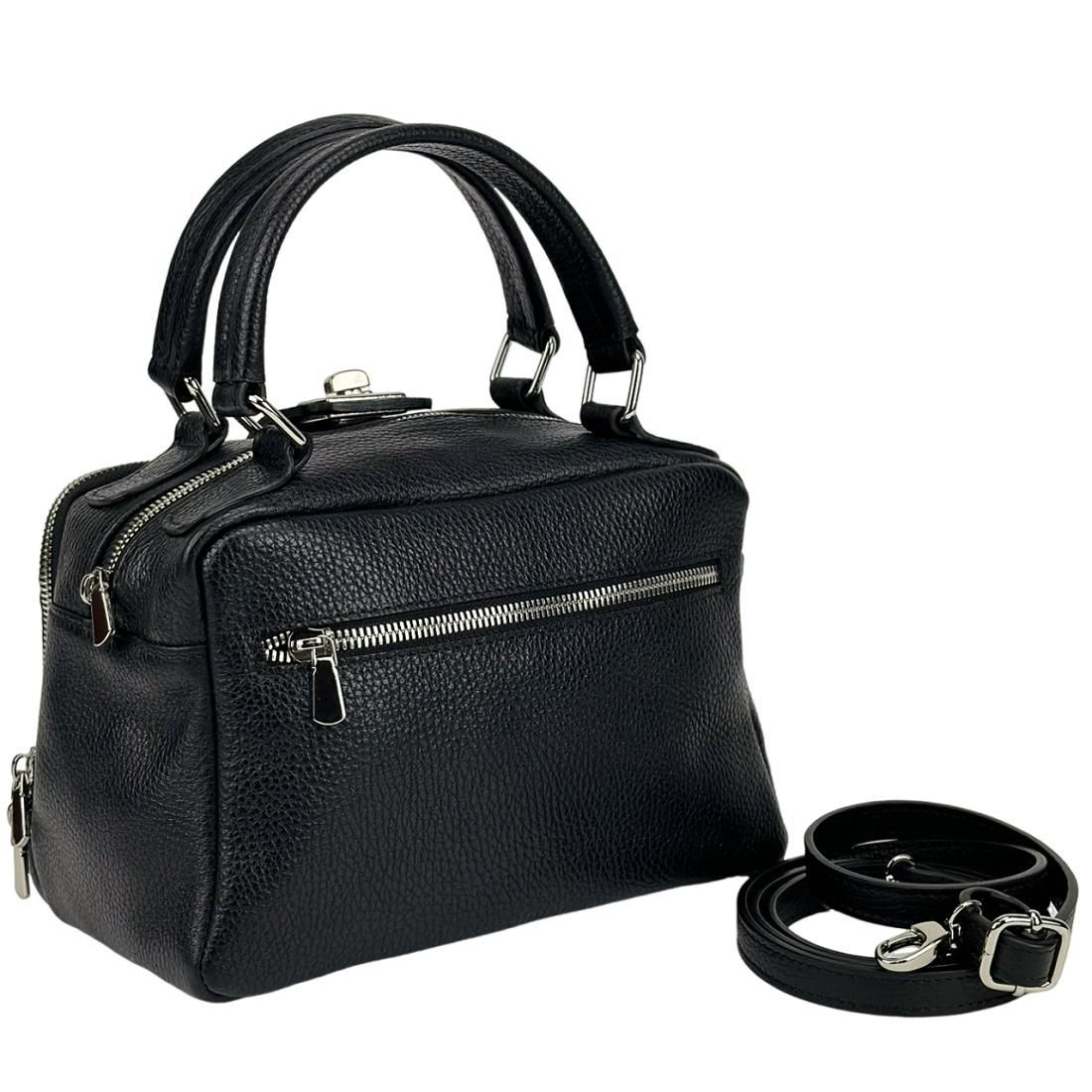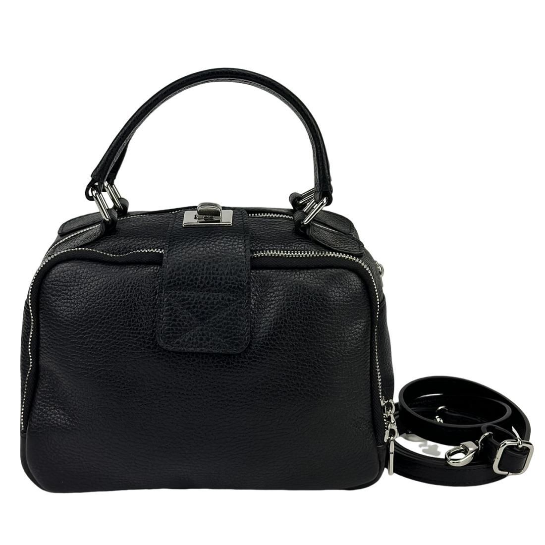 М'яка шкіряна сумка на два відділи з ручкою Firenze Italy F-IT-1045A чорна