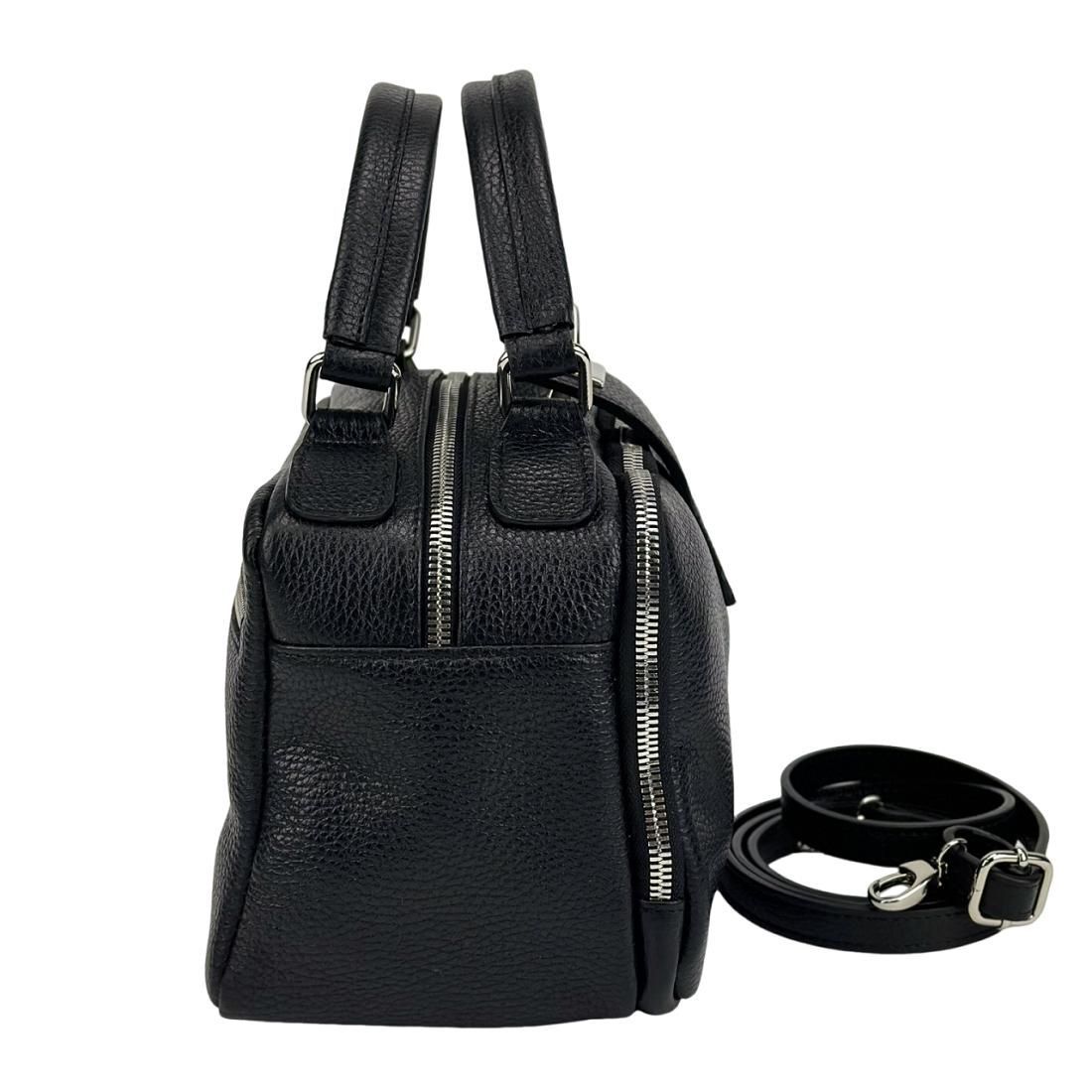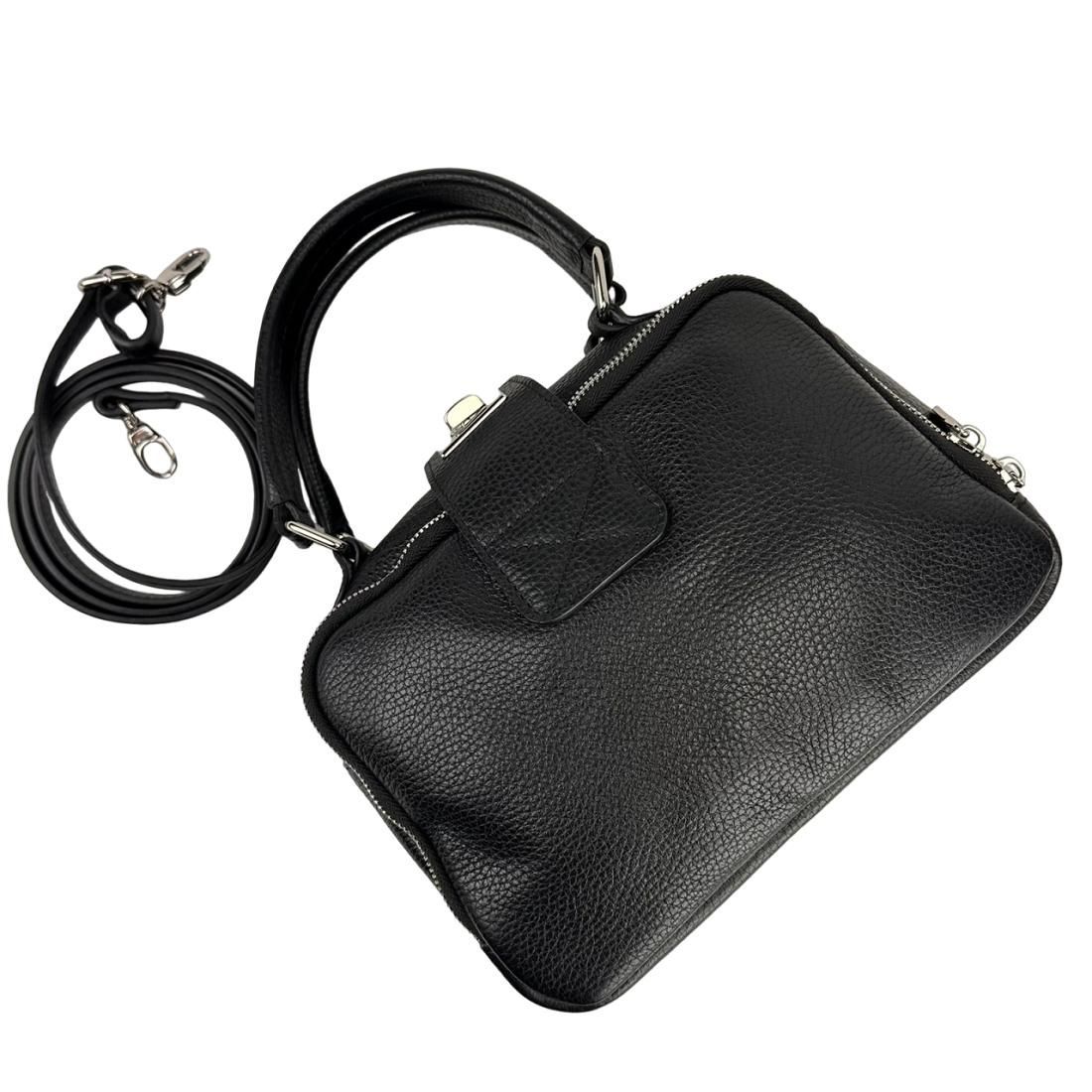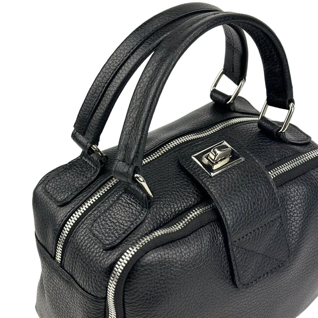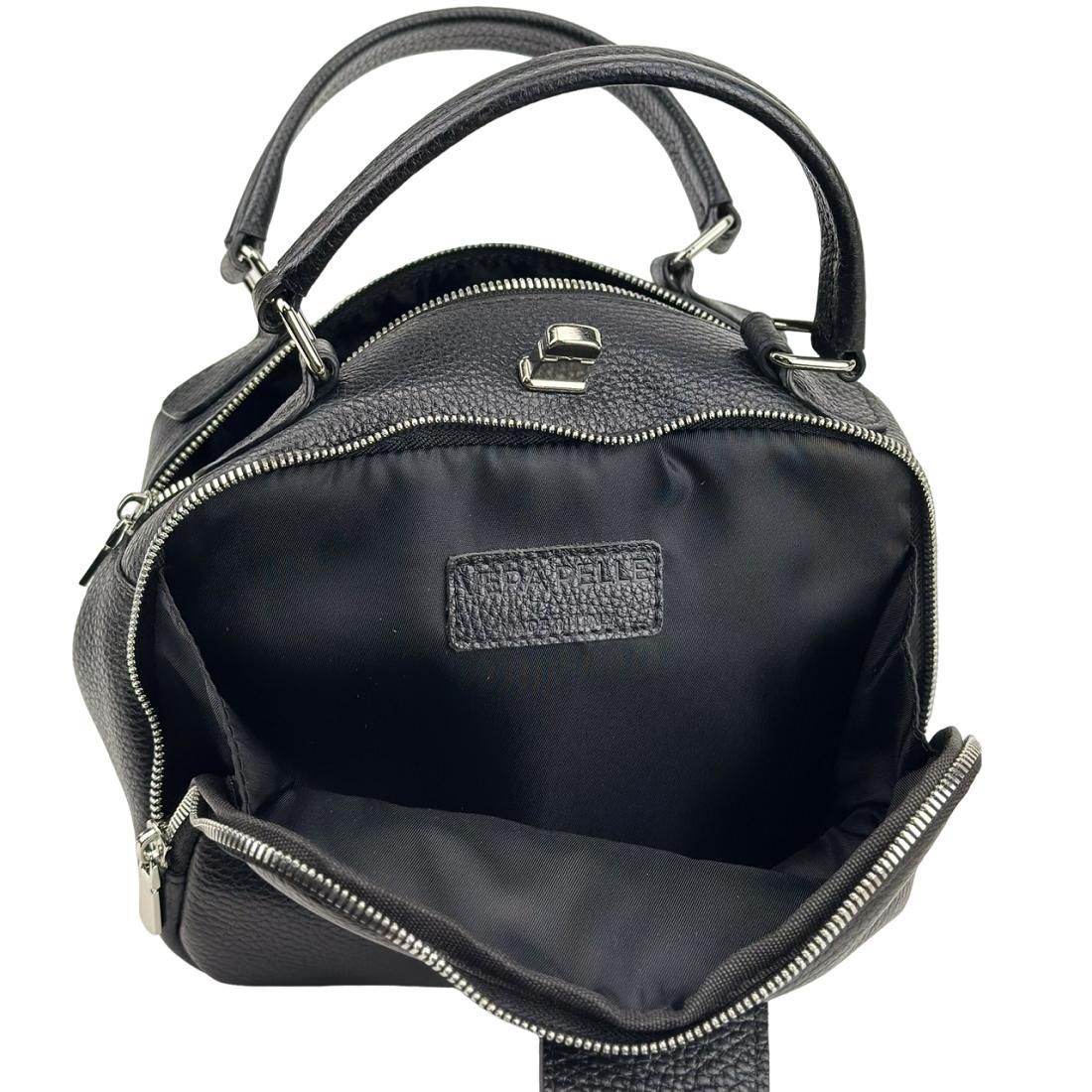 М'яка шкіряна сумка на два відділи з ручкою Firenze Italy F-IT-1045A чорна