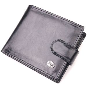 Надежный мужской кошелек из натуральной гладкой кожи ST Leather 19408 черный