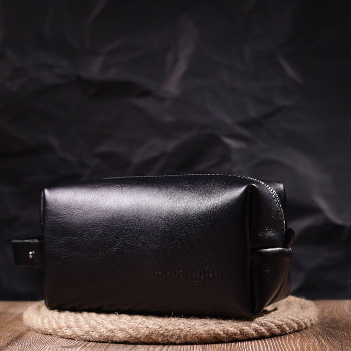 Удобная мужская косметичка большого размера из гладкой натуральной кожи с патриотическим тиснением "Все будет Украина". Аксессуар на все случаи жизни, его можно использовать дома для хранения личных вещей, для поездок, спорта и прочего. Выполнен аксессуар из износостойкой натуральной кожи высокого качества. Цвет изделия – черный, глянцевая фактура гладкая. Упакованный несесер в фирменную сумку-чехол.