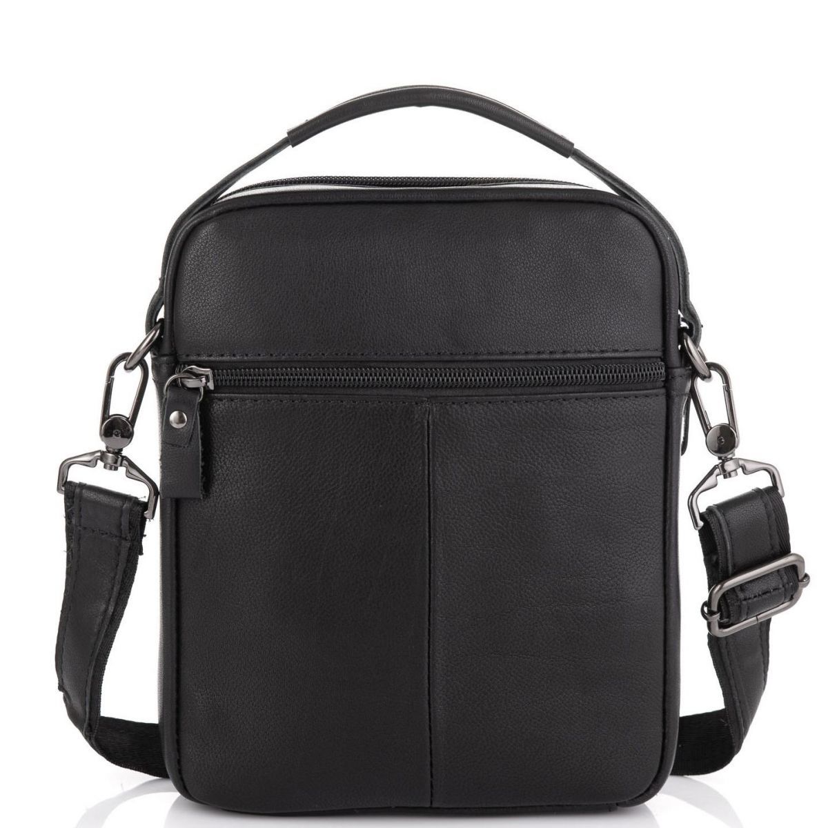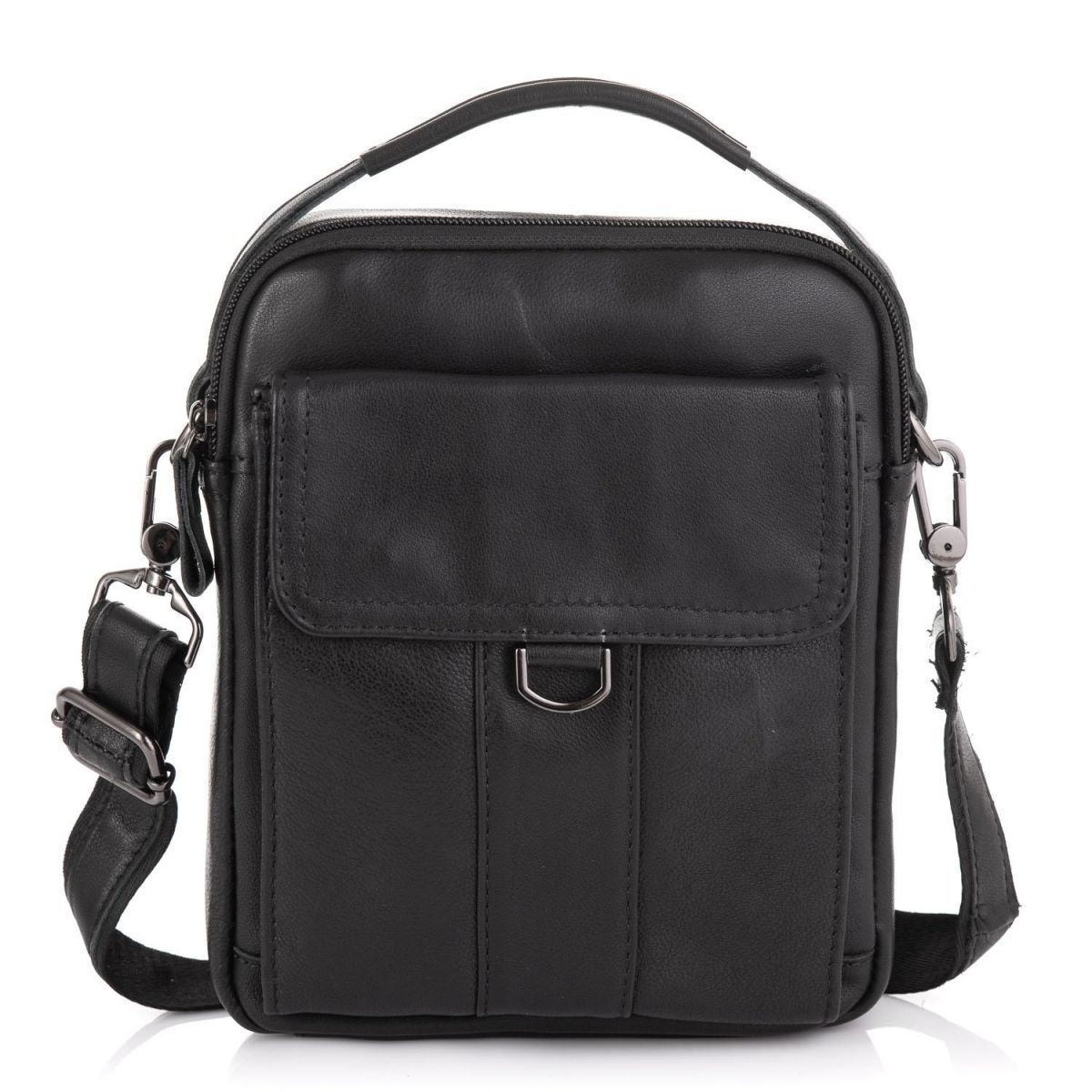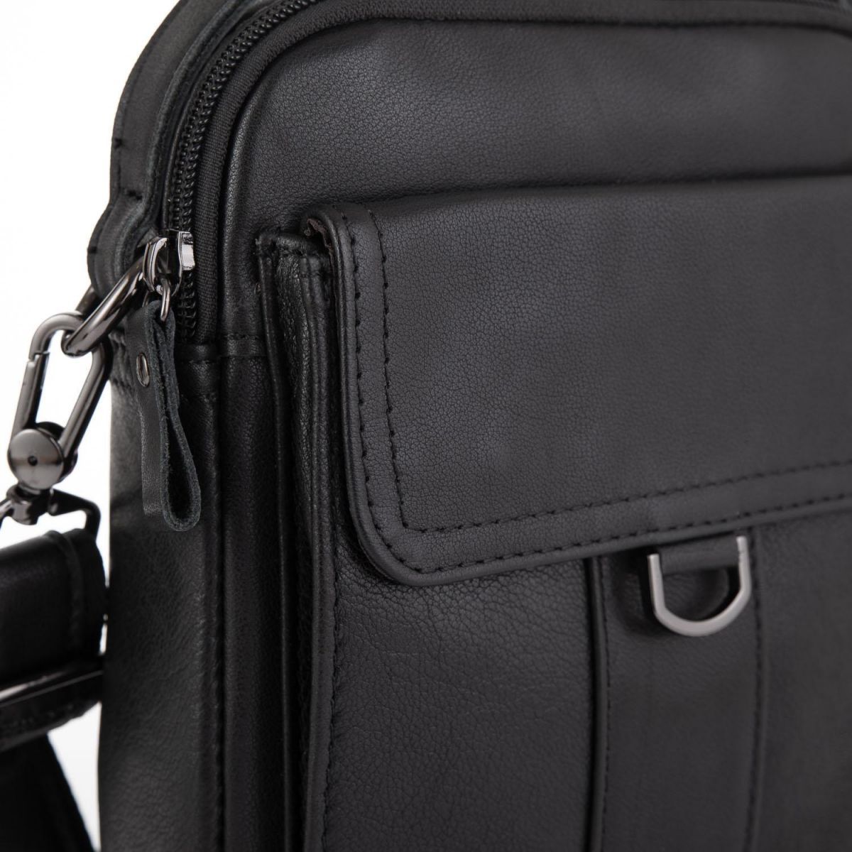 Чоловіча сумка Tiding Bag N2-8013A виготовлена з натуральної шкіри чорного кольору. Структура шкіри матова, гладка. Розміри становлять 18 x 23 x 5 см. Особливості: має одне відділення яке закривається на блискавку. Всередині головного відділення є кишеня на блискавці з розміром 13х10 см і кишеня відкритого типу для дрібниць. З лицьового боку розташована горизонтальна кишеня що закривається на клапан з магнітами, має розмір 14х14 см. З задньої частини месенджер має кишеню на блискавці з розміром 15х11 см. Месенджер має середню жорсткість тому відмінно тримає форму. Підкладка - текстиль. Плечовий ремінь регулюється по довжині, в діапазоні 75-140 см. Ремінь знімний. Зверху аксесуара розташована велика шкіряна ручка для перенесення, що дає можливість носити сумку в руці. Колір чорний. Колір фурнітури: темне срібло.