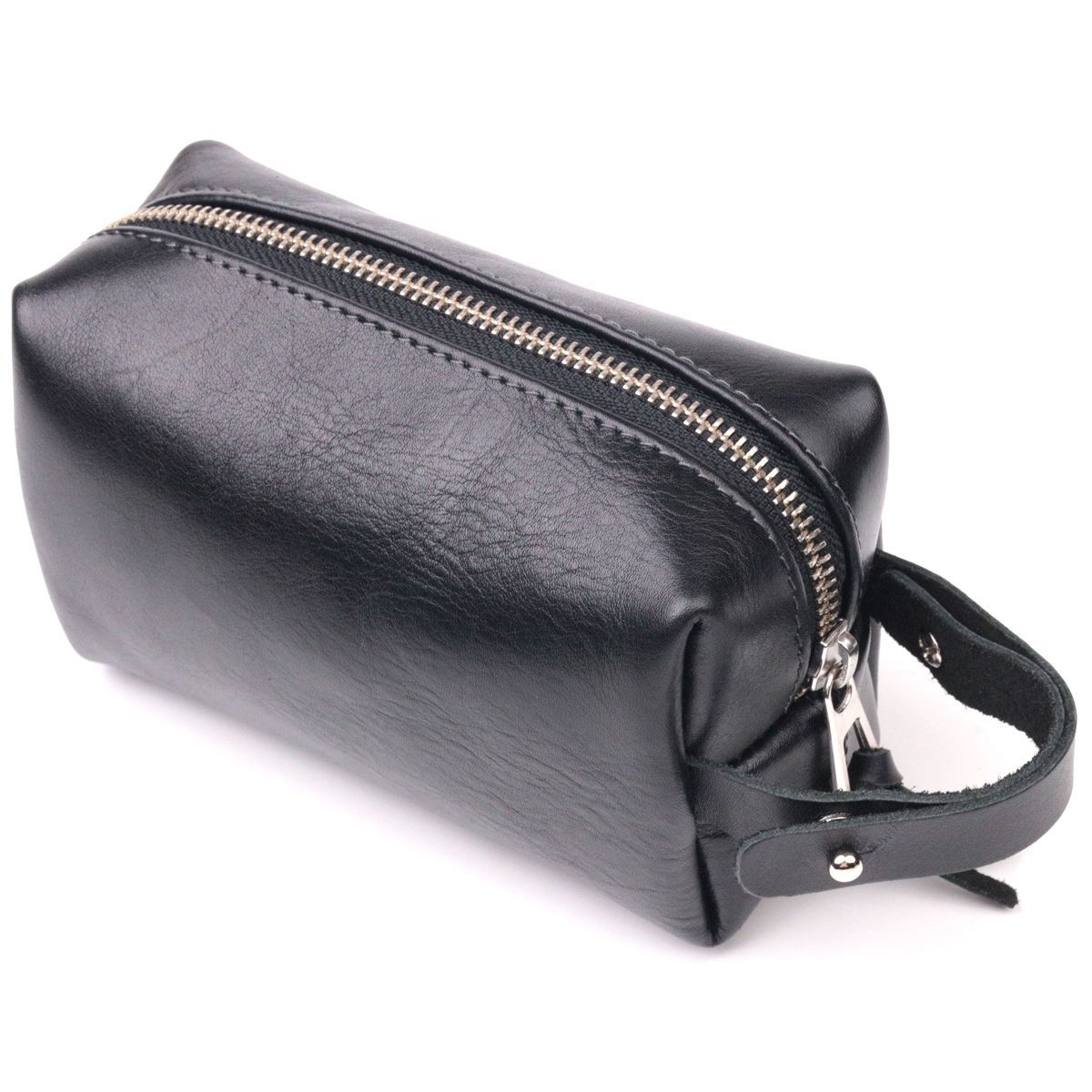 Небольшая косметичка из гладкой кожи на молнии Украина Grande Pelle 16761 черная