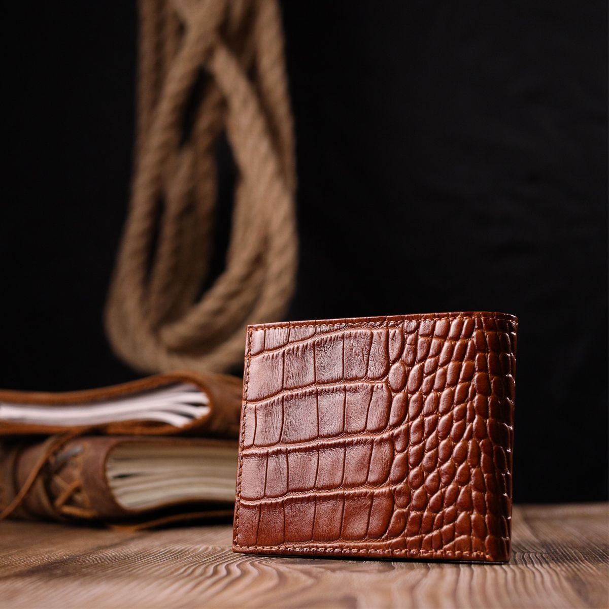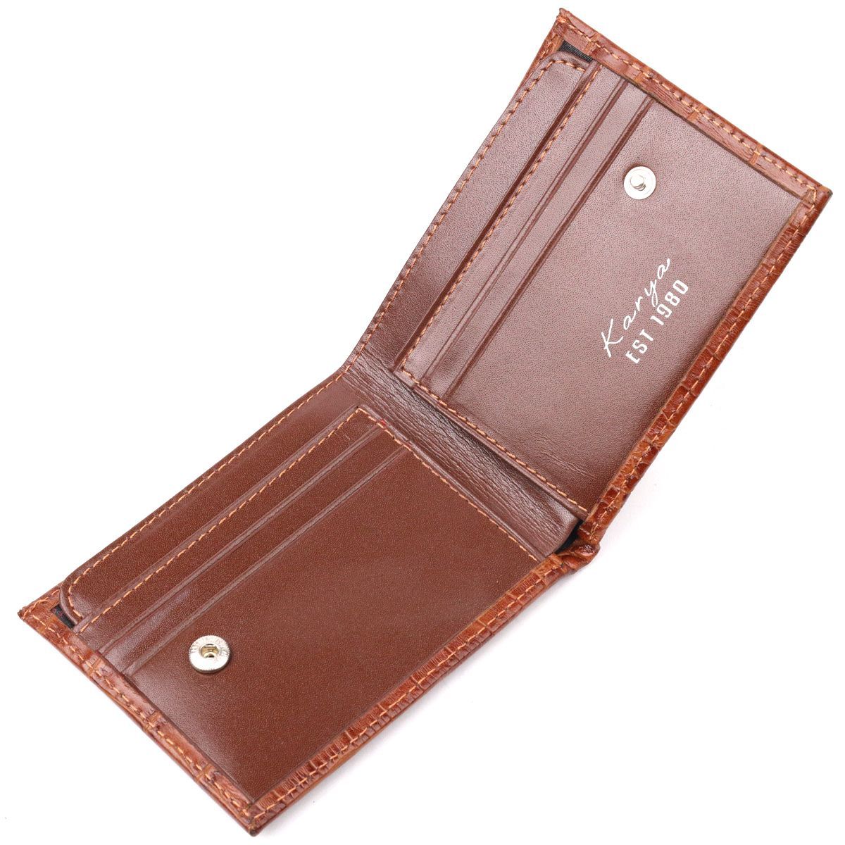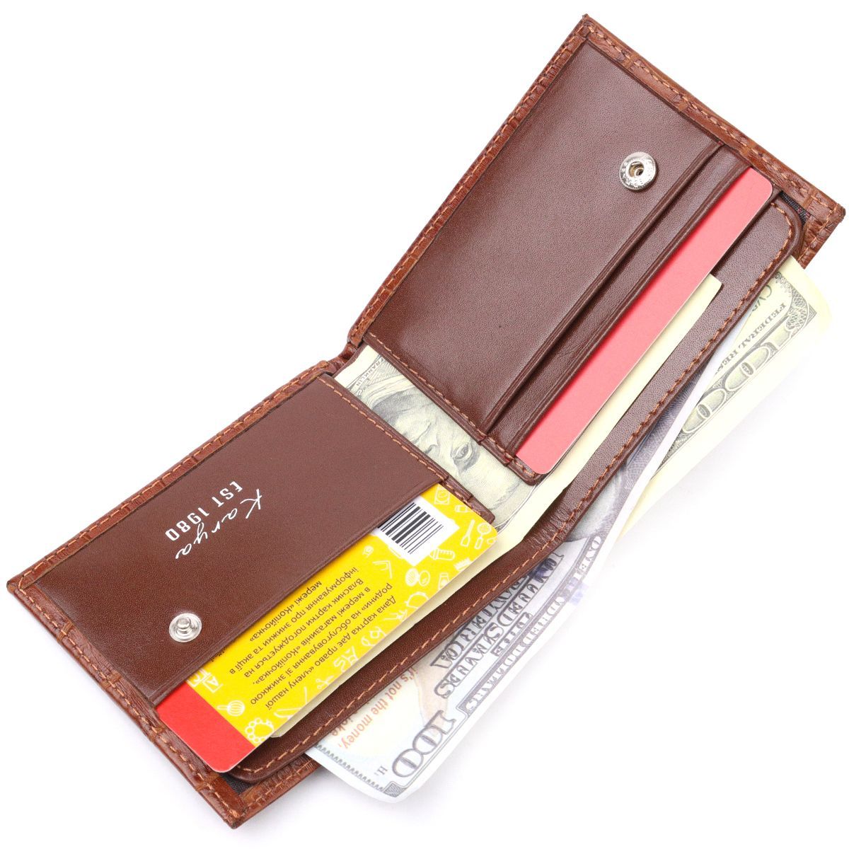 Небольшой мужской зажим из фактурной кожи под рептилию KARYA 21051 коричневый